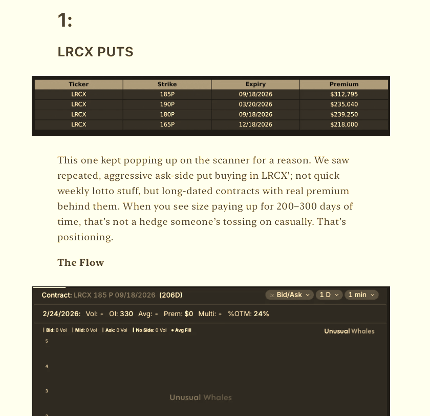 LRCX hit target and did exactly what it was supposed to do. We’re not overthinking these—if the flow is really, really good for specific reasons and it has the chart to support a large move—we buy.