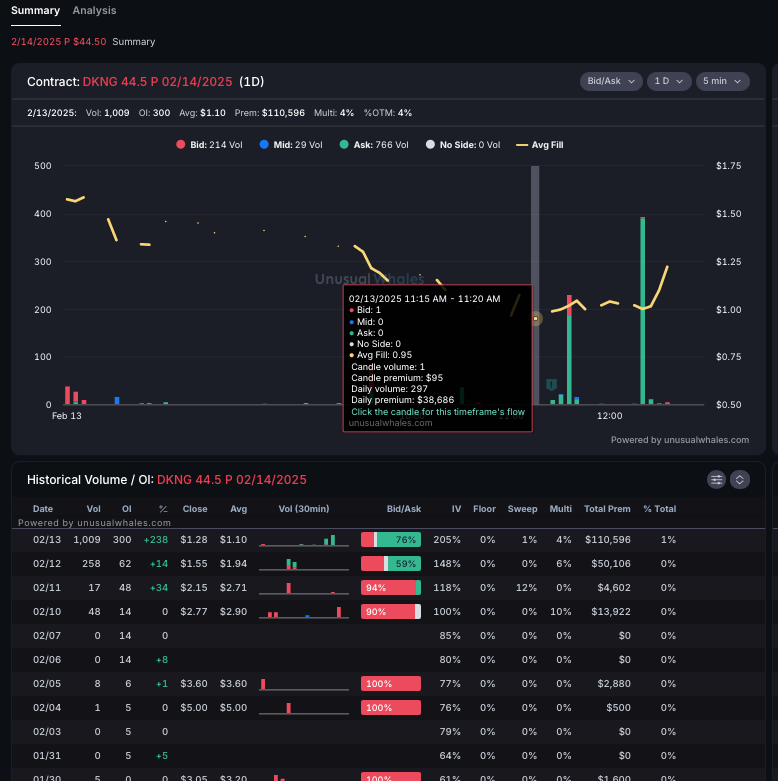 Tons of flow came in on both the 41.5p and 44.5p lottos last hour of trading