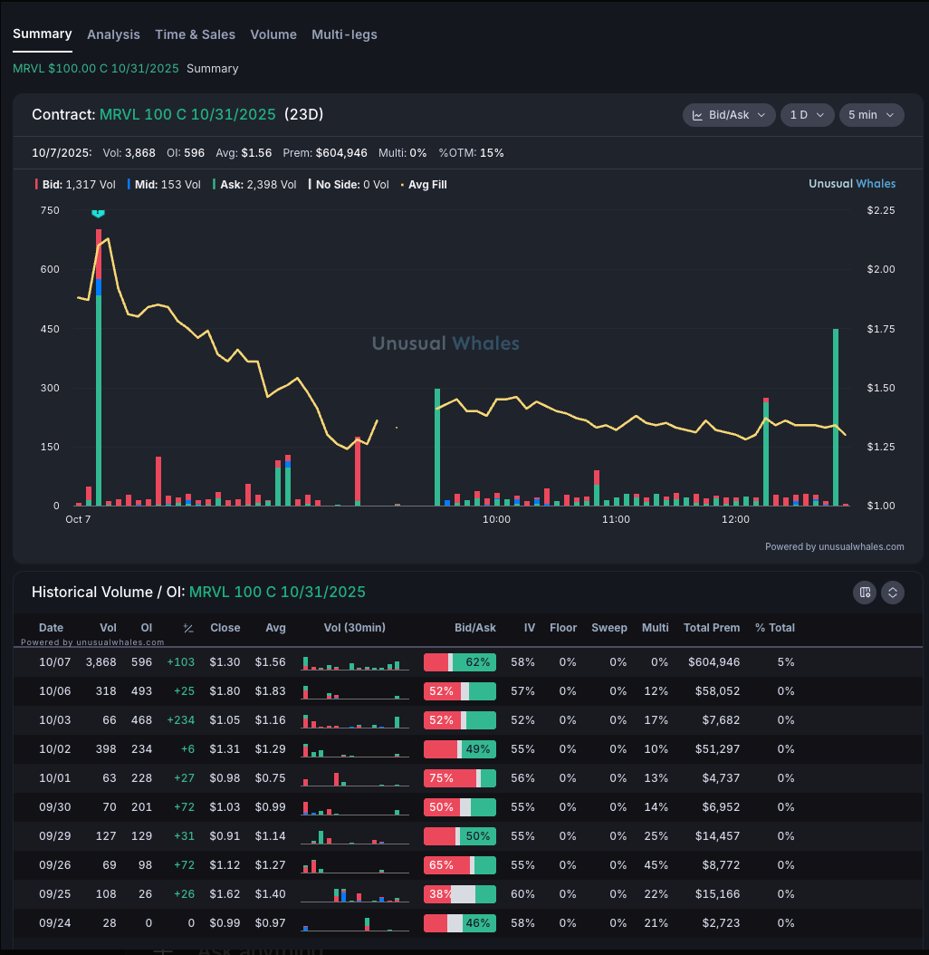 💥 MRVL $100C 10/31/2025 (23DTE)