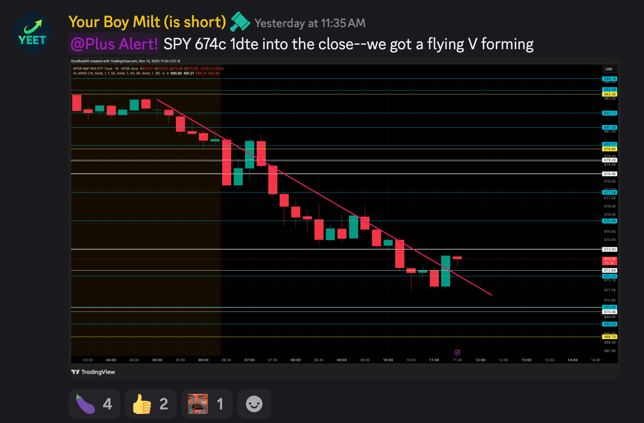 🚀 Last Night’s Banger: Against all odds the 674c we swung in the Garden due to SPY Magic are now in the money!