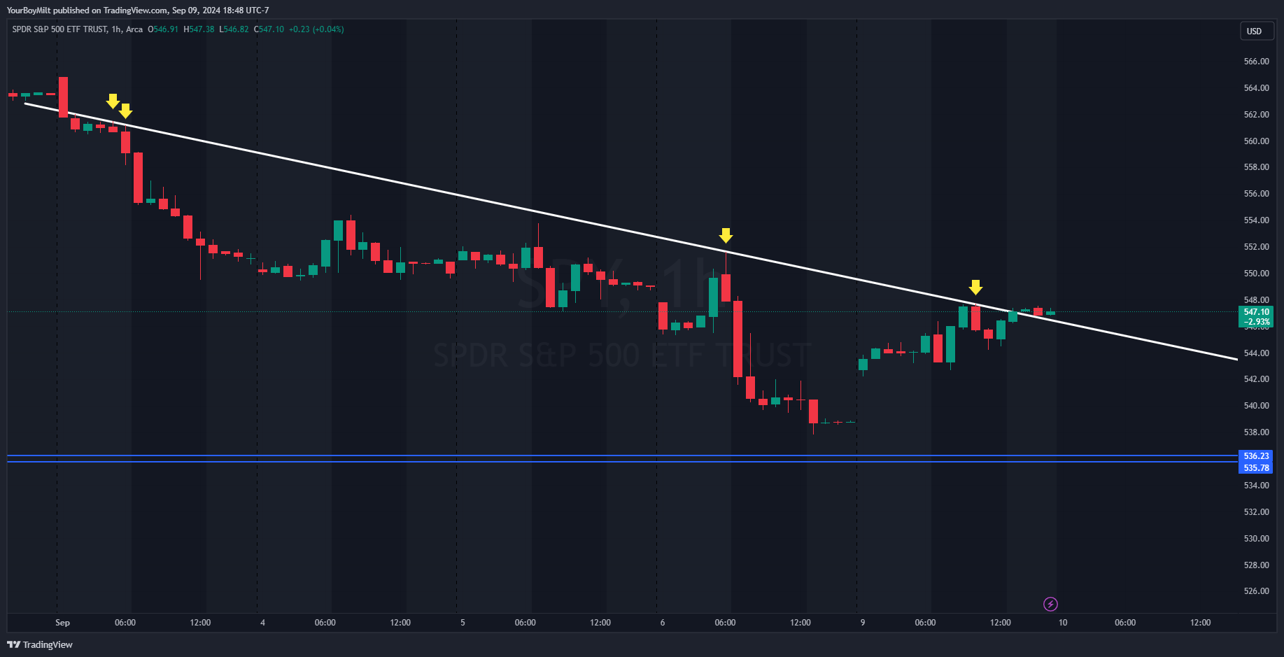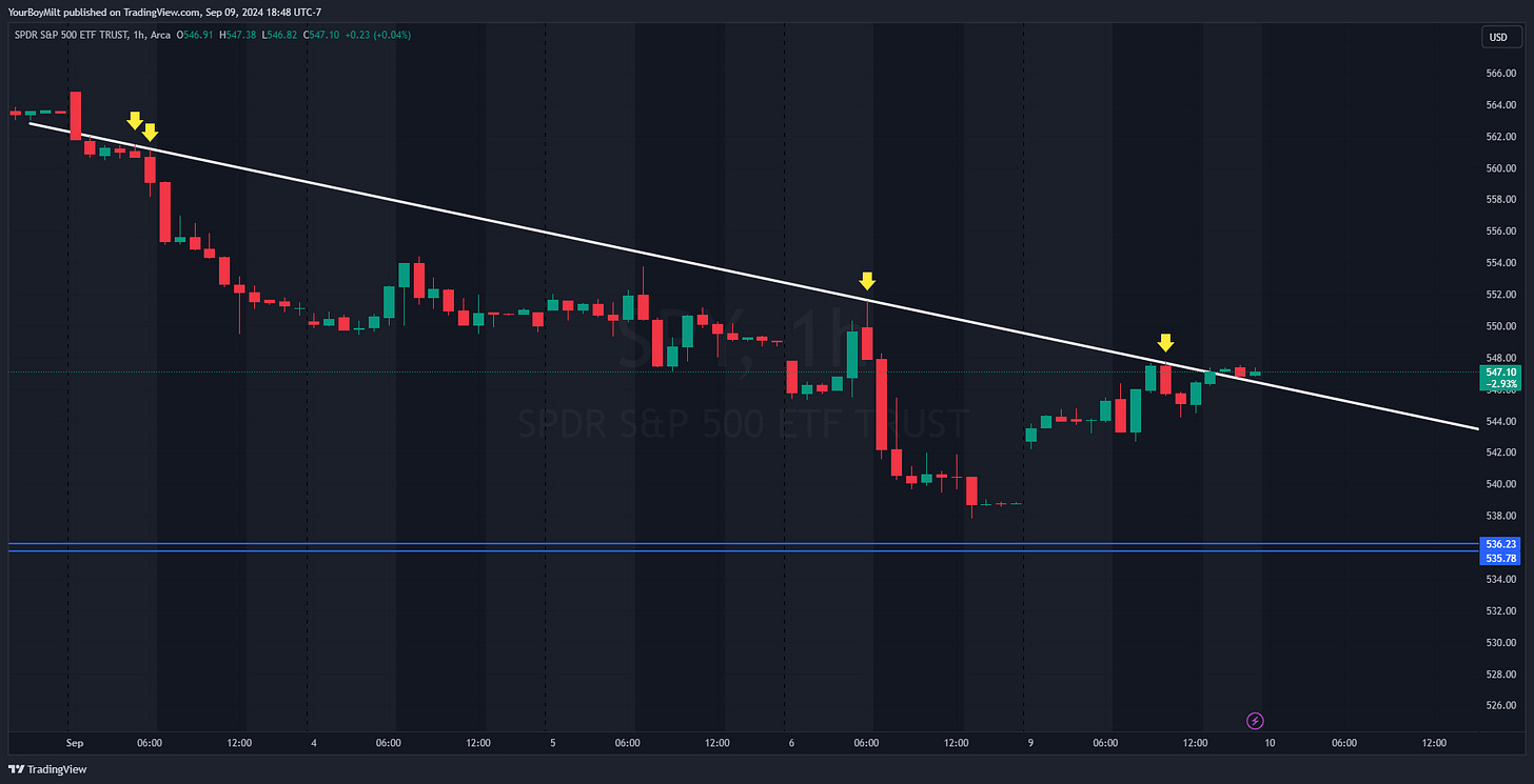 Hourly decision-maker: The close of the hourly is always your decision-maker with our method of tradingâwhether itâs about trendlines, levels, or entry. I actually jumped the gun on a wick thinking we were still bullish, and paid the price.