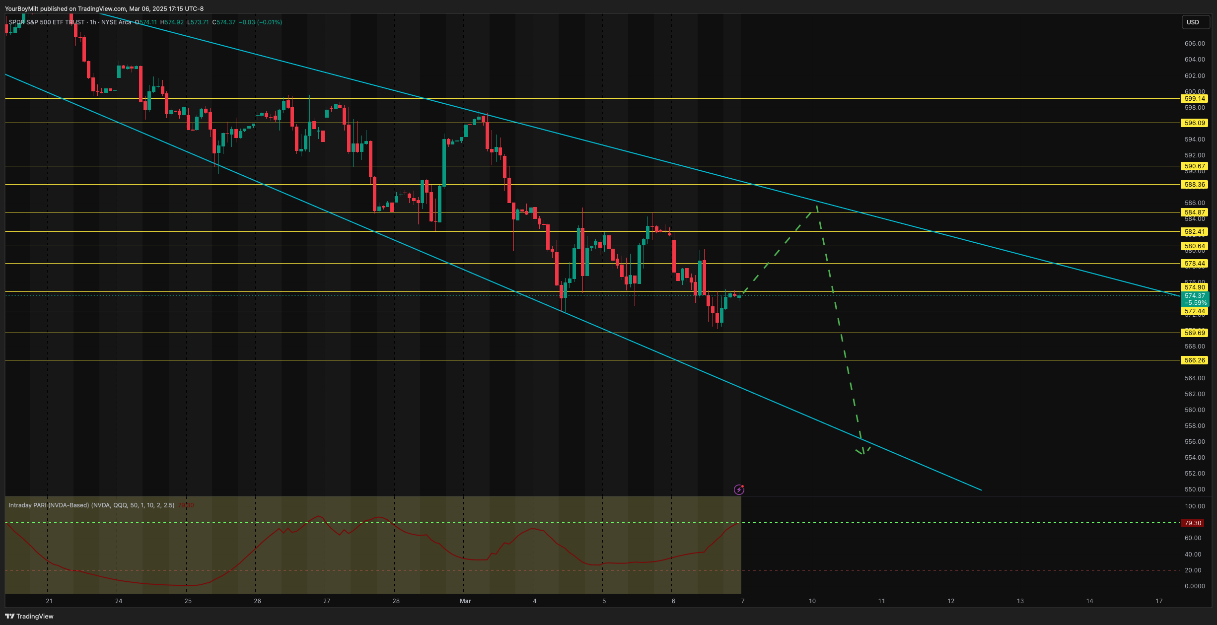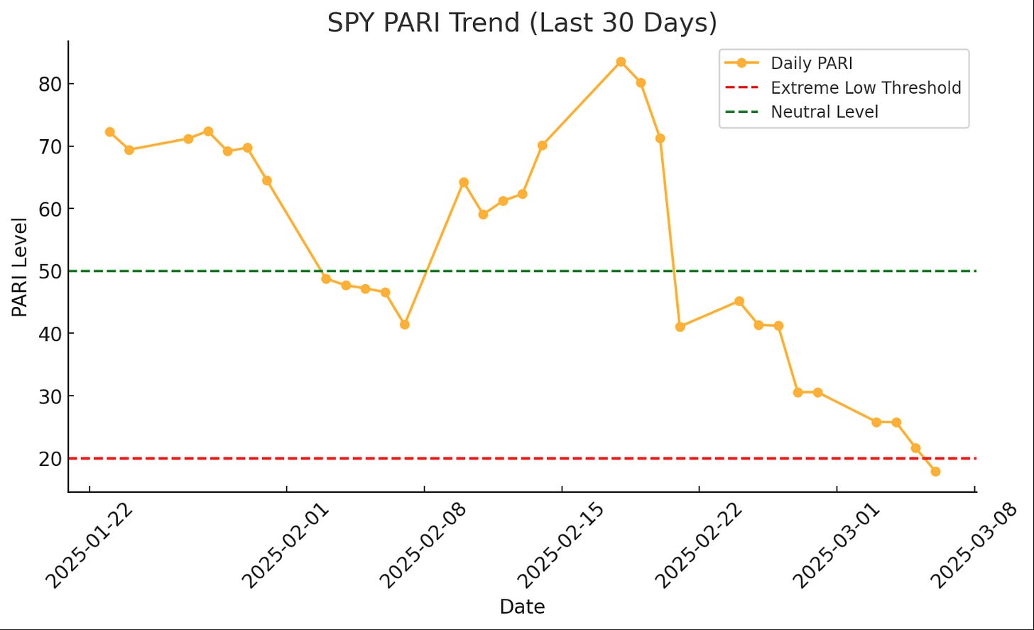 The intraday PARI (bottom of the SPY chart) has started climbing, meaning the market structure itself is shifting under the surface.When intraday PARI leads the daily trend, it often predicts a market reversal within the next few sessions. Get ready to go up! ( note pari at the bottom)