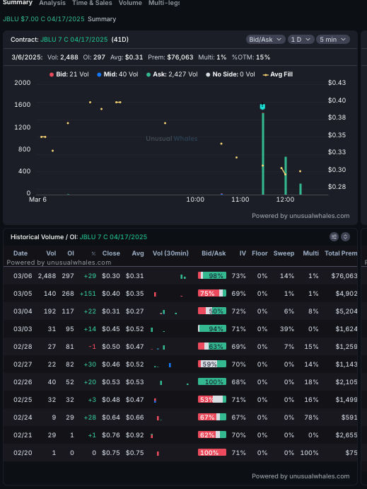 🐟 The Jet Blue Fish: Deep OTM Calls Looking for a Moonshot