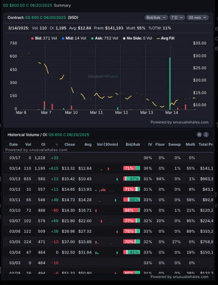 GS has been coiling in a key range, and the market tide suggests it could be gearing up for a significant upside move. With strategic call flow and technical levels aligning, let’s break it down.