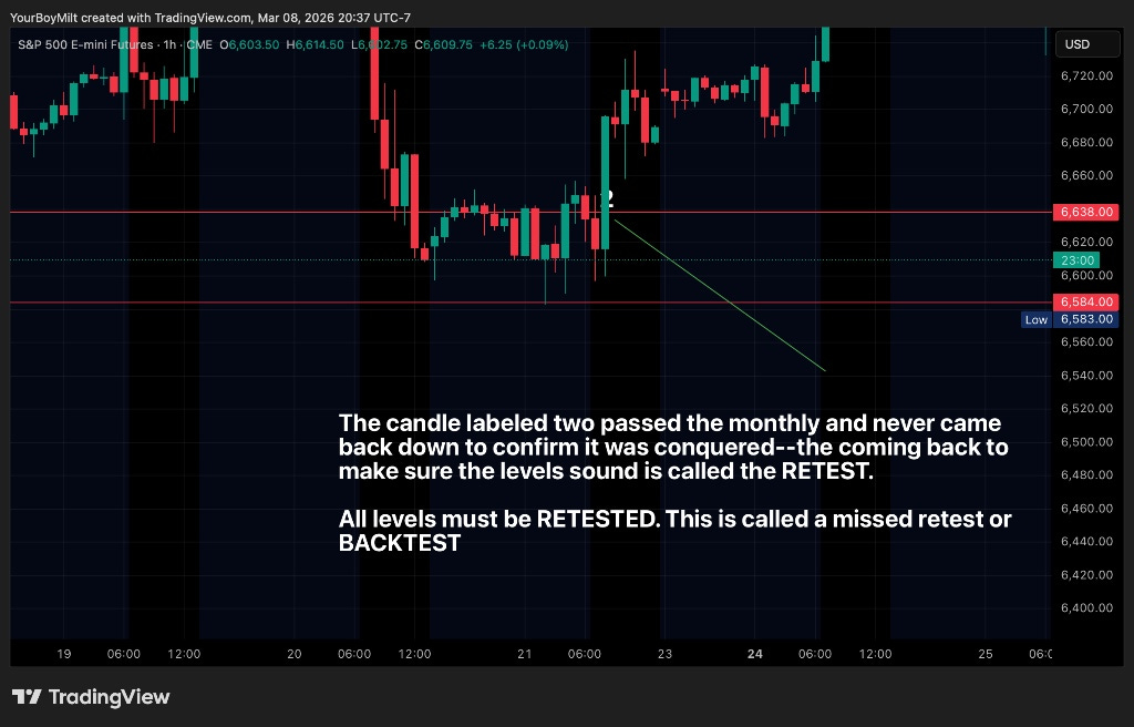 Back at candle ‘2’, price passed the monthly and never came back to confirm it was conquered. 🚩
