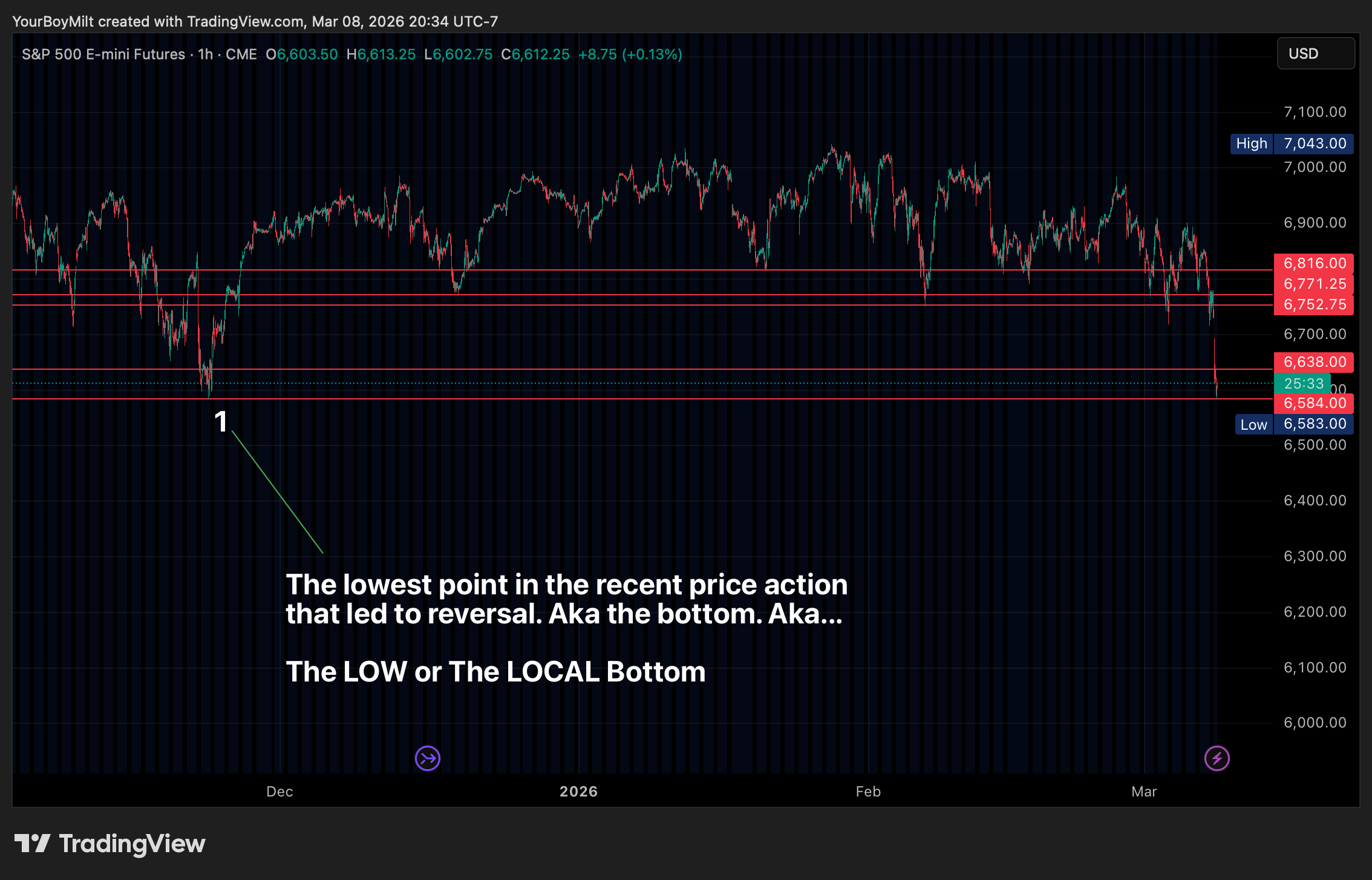That’s the Local Bottom—the lowest point in recent price action that led to the entire reversal. 🔄