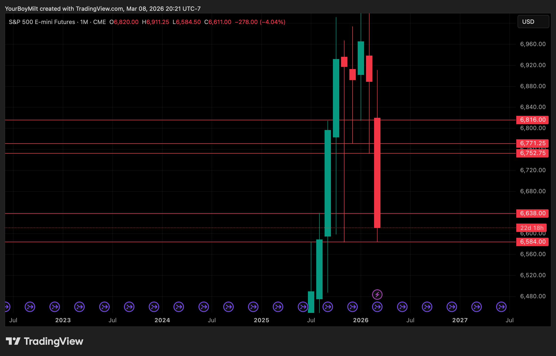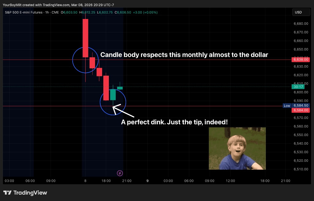 The candle body respects that 6,638.00 monthly level almost to the dollar. 💵