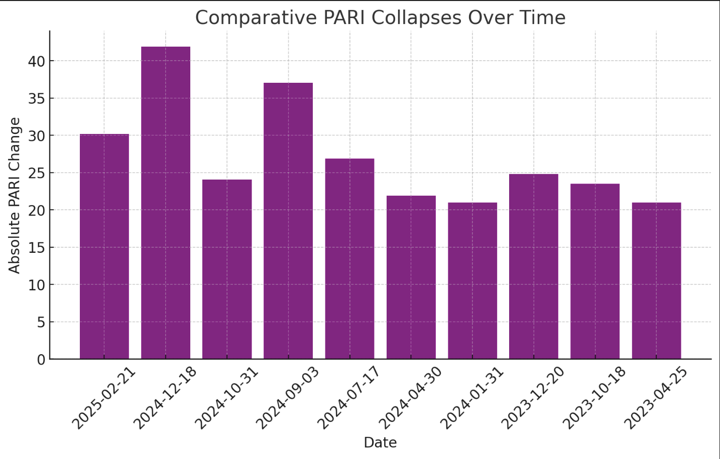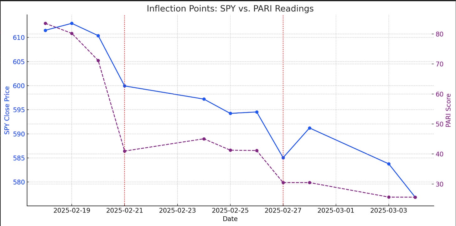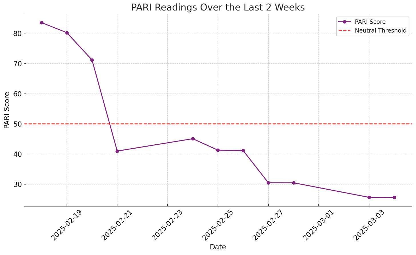 Feb 21, 2025 – A 30-point drop in PARI foreshadowed the breakdown that led to today’s structural rejection.