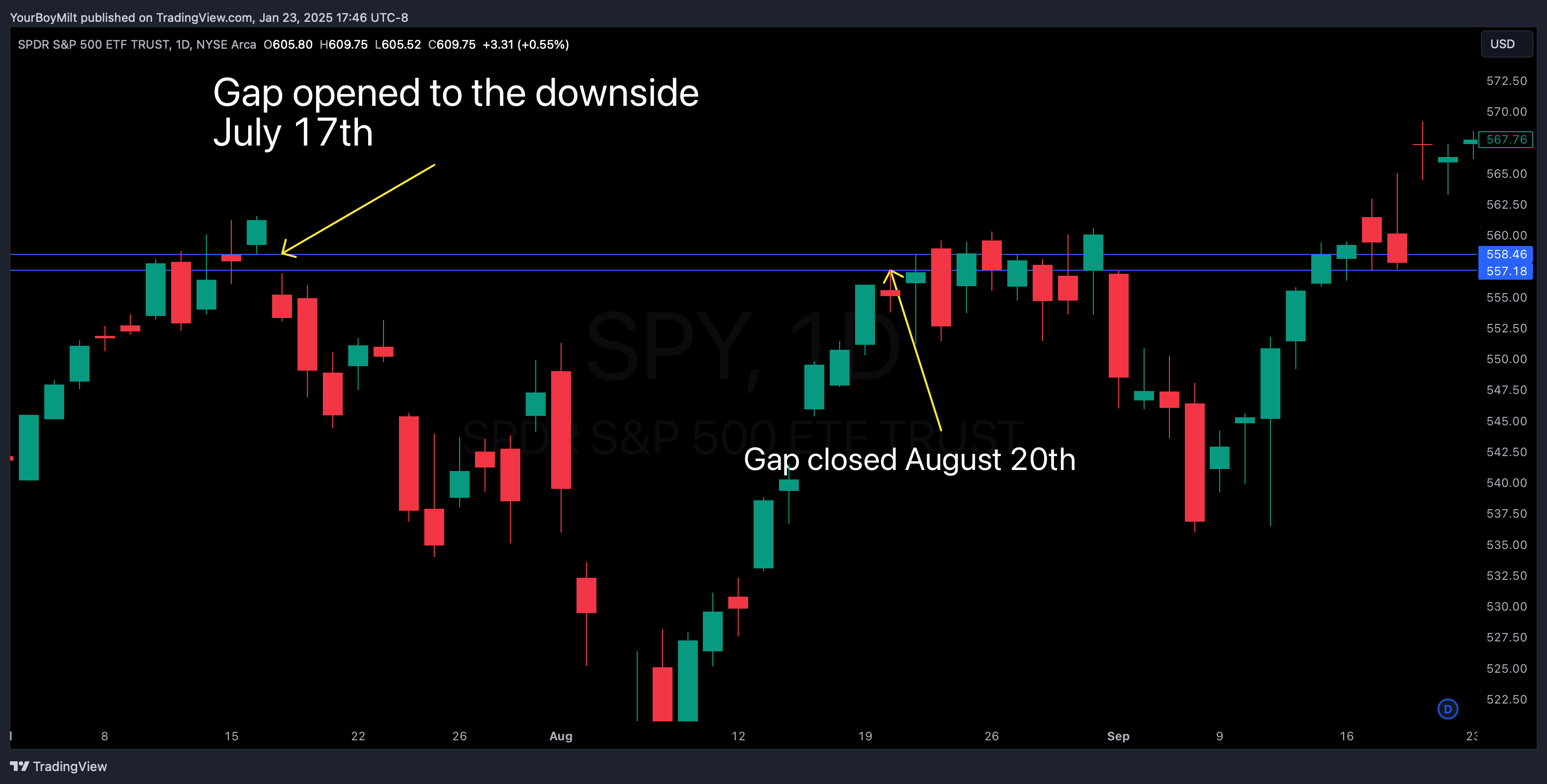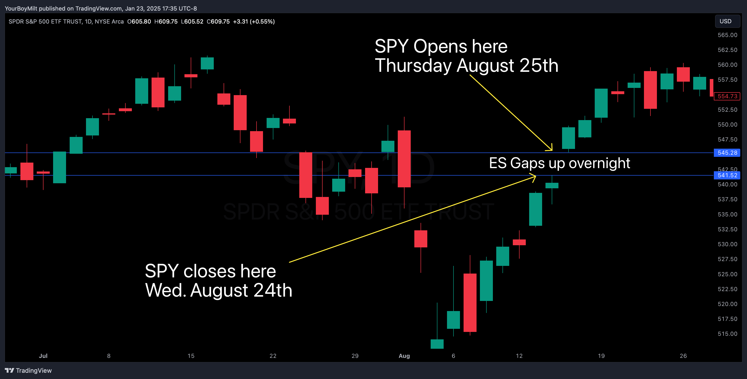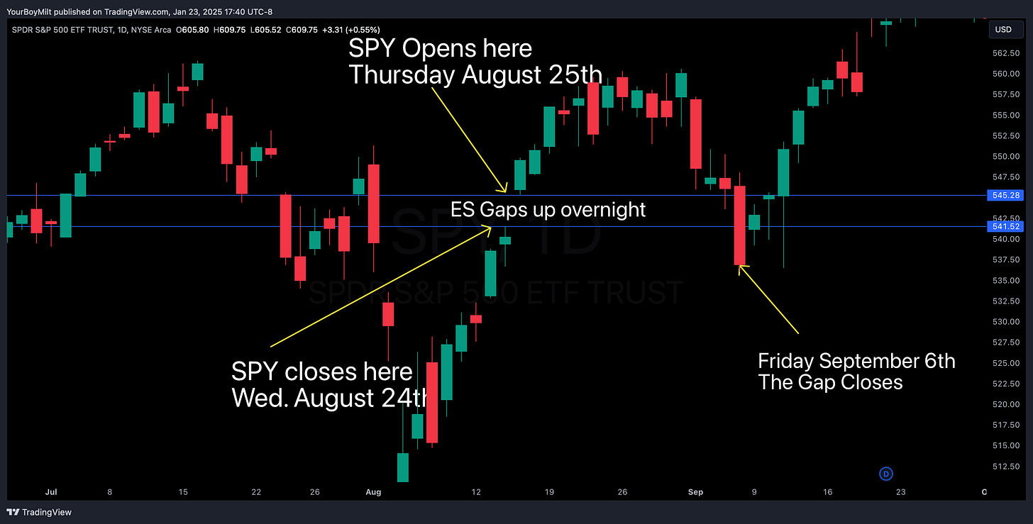 When SPY closes and ES (futures) have an overnight ripper, it creates a GAP in the Price Action between the SPY previous day’s close and the next day’s open
