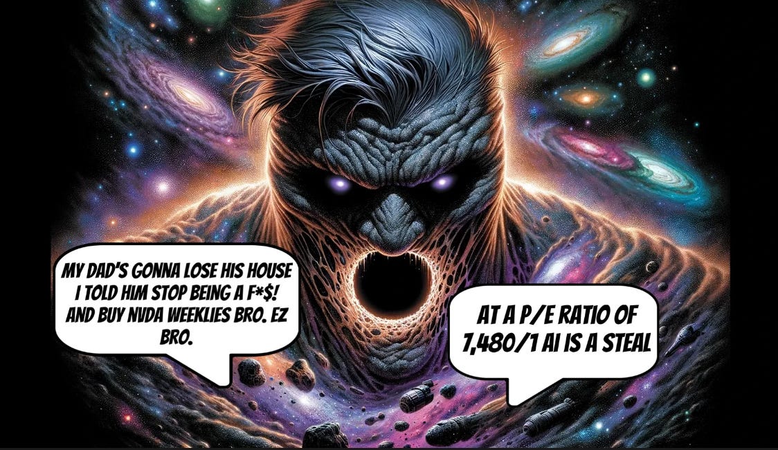 As time marches on, traders are put to sleep by the bullishness in a sick, twisted, LEVERAGED LULLABY until they forget all about the Backtest Ecosystem, and just keep buying calls. But I’ve only seen one creature able to create such a wide-reaching sleep with multiple gaps skipped in a single month…when he’s elected the market forgets bearishness ever even existed…