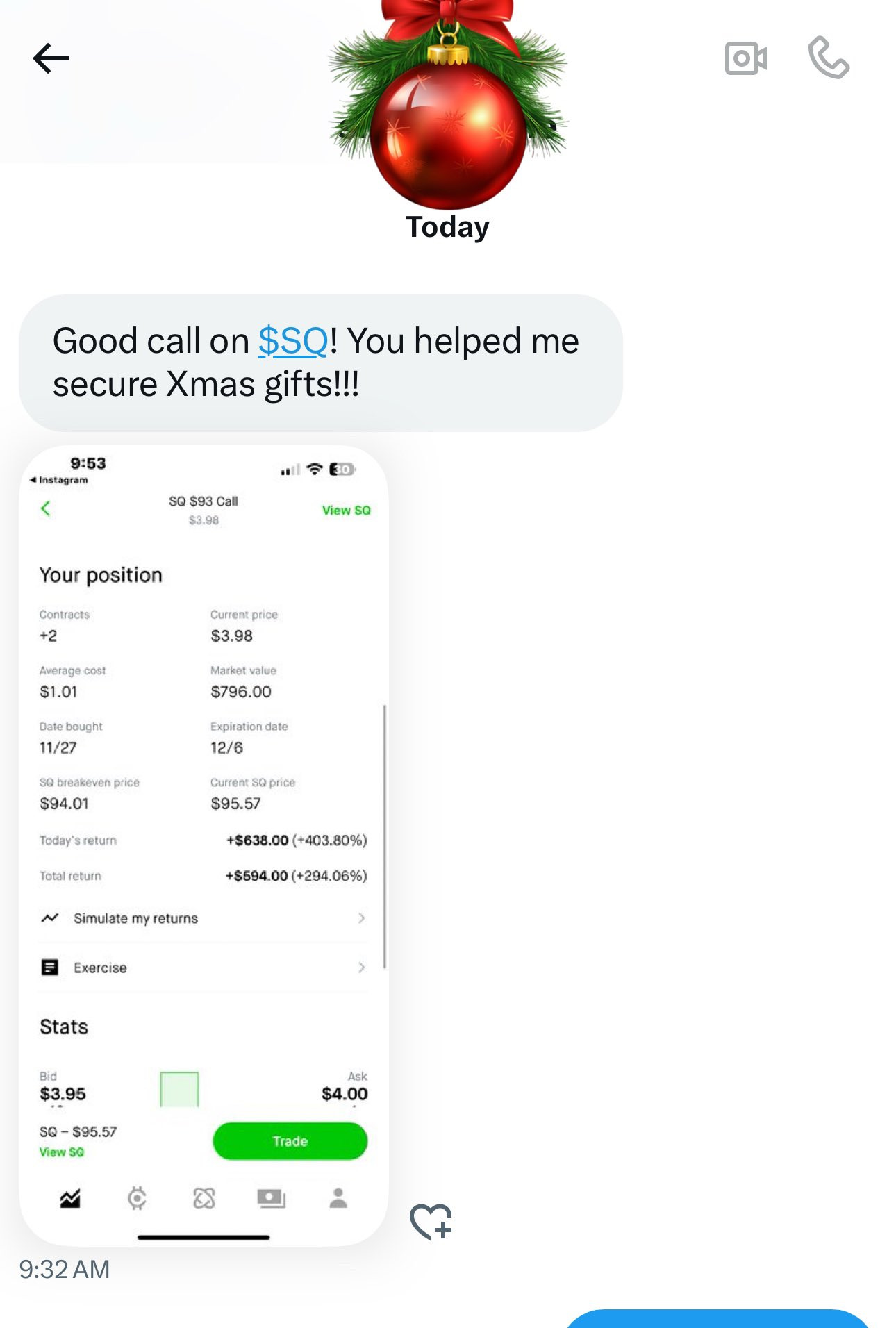 PS: in the meantime we’ve delivering multi-baggers on the Free Twitter and in discord. Shout-out to an old friend for this gain on SQ: