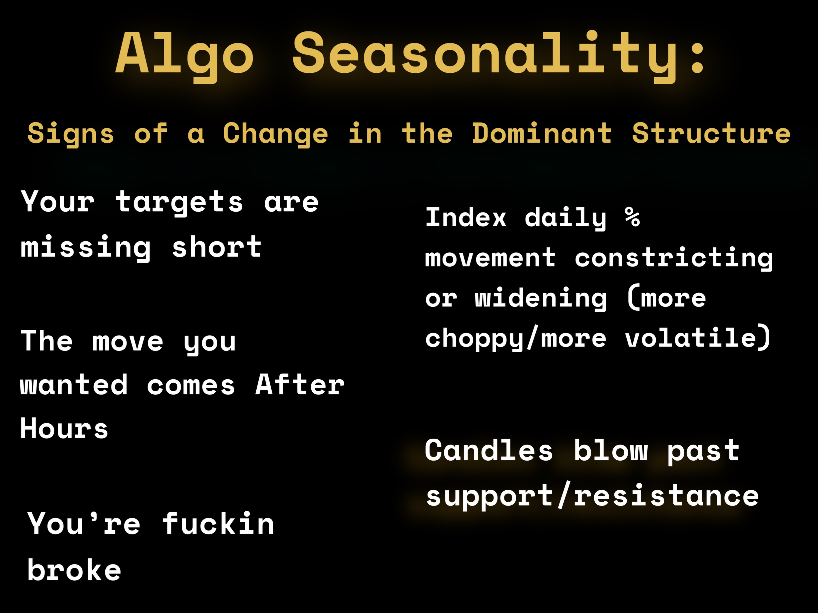 The information in here on Algo Seasonality is and will always be free—that’s our right as retail, to know enough to even the playing field. If you want daily updates to anything you like here, or flow play entries exits and updates, SPY trade plans, etc, consider signing up for YEET Plus for 10/month. If you don’t, no worries at all, we’ll still be pumping out a ton of free content and education.