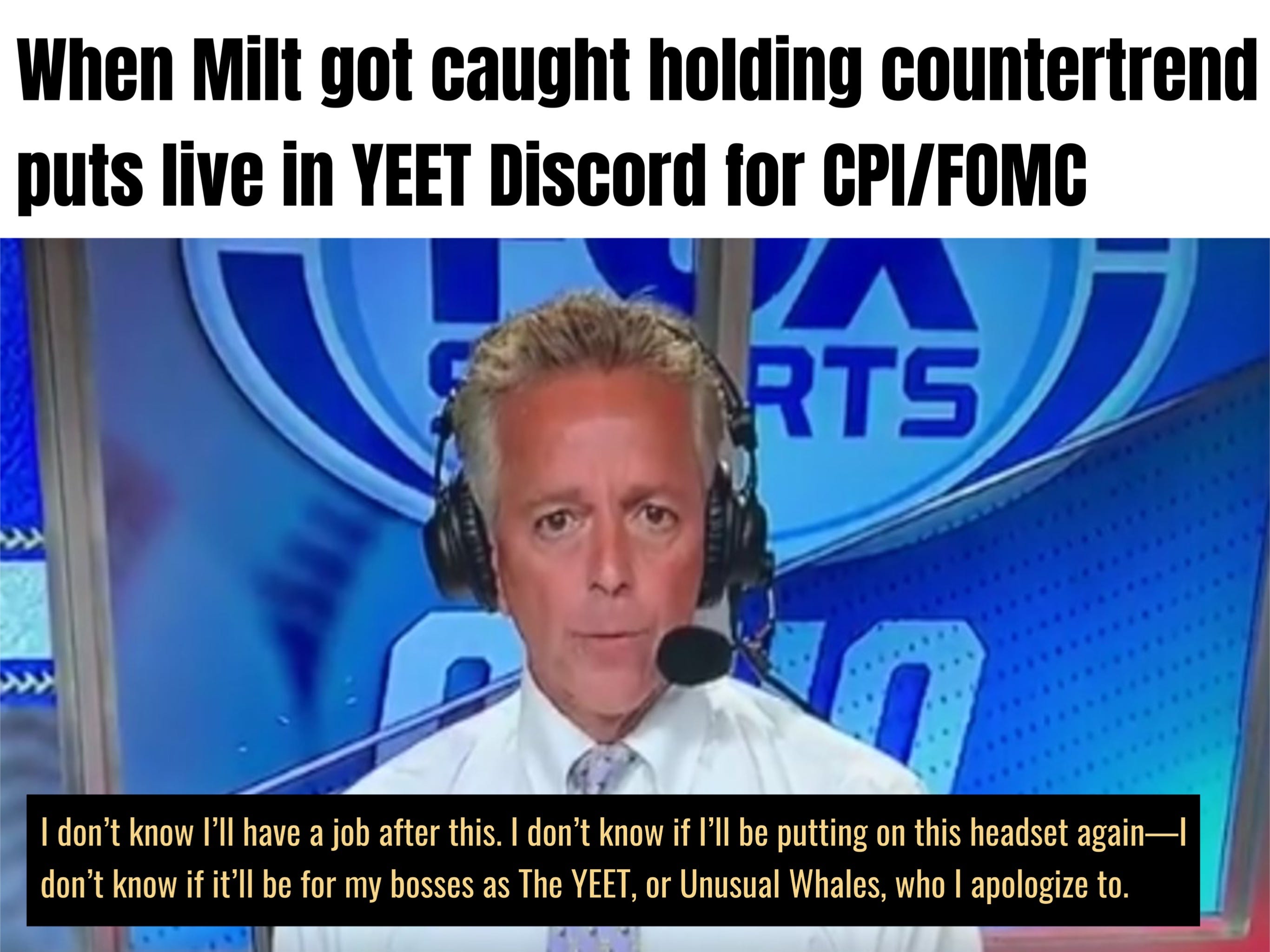 Our biggest takeaway from the game: Price Action into CPI follows the same rules of our method we’ve been teaching, which is why we sent balls soaring Tuesday. But ultimately CPI is always going to be a gamble, and a thesis for an event like that in a time like this is about as reliable as our coin flip before the game (50/50).