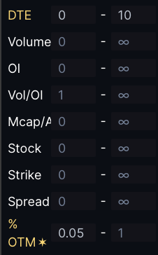 If we’re only looking for something with say, 2% OTM within the same time frame our filters show this: