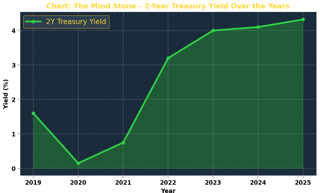 📊 Chart 3: The Fed’s Sword – 2-Year Treasury Yield Over Time