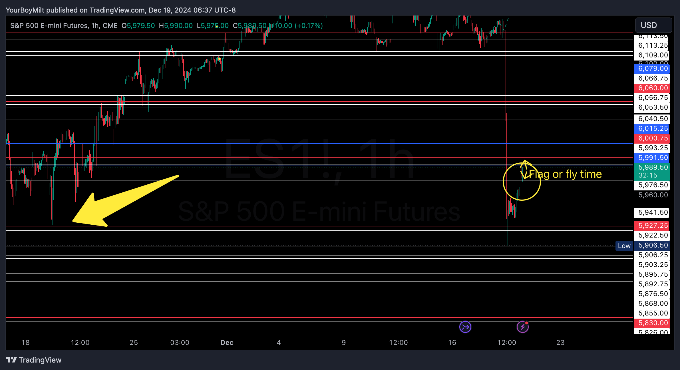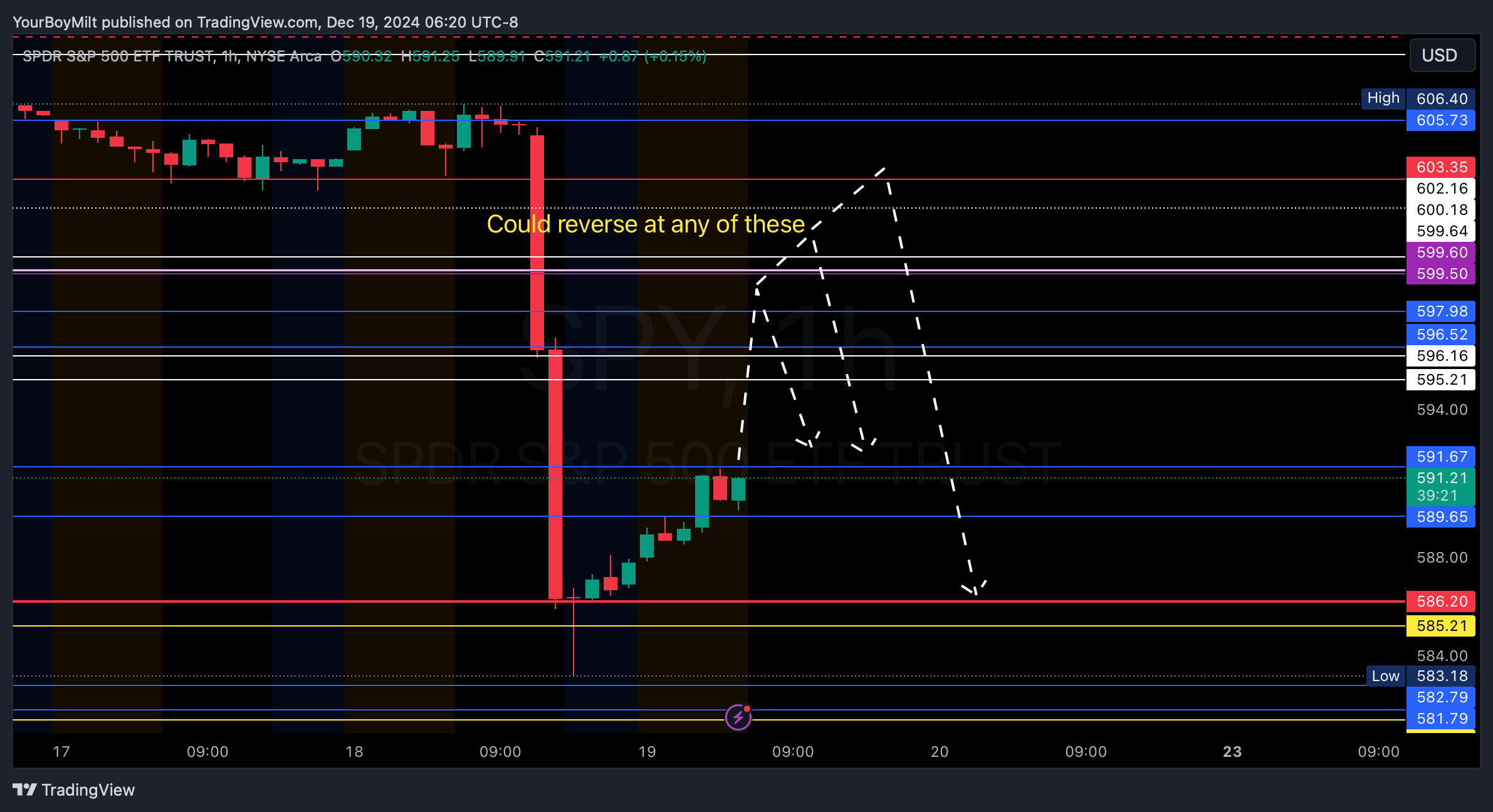 Profit take determined by: Hourly close above 591.5. If you didnât get in yesterday, a confirmed break of tnat level means you can join in
