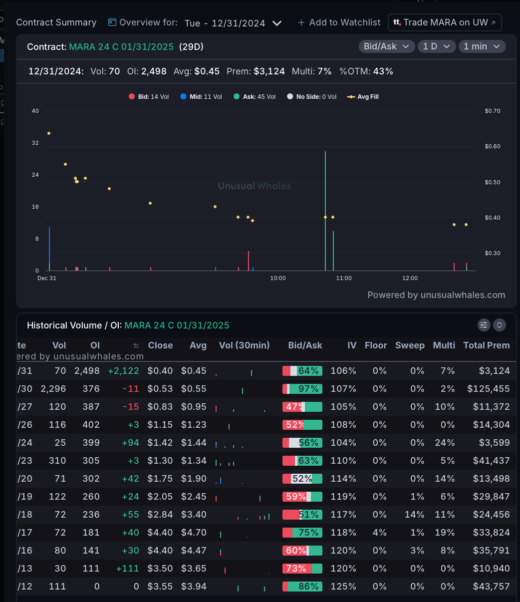 MARA: Looks like lil folks saw fit to put 125k on a MARA 24c 1/31/25 on Tuesday. one of us