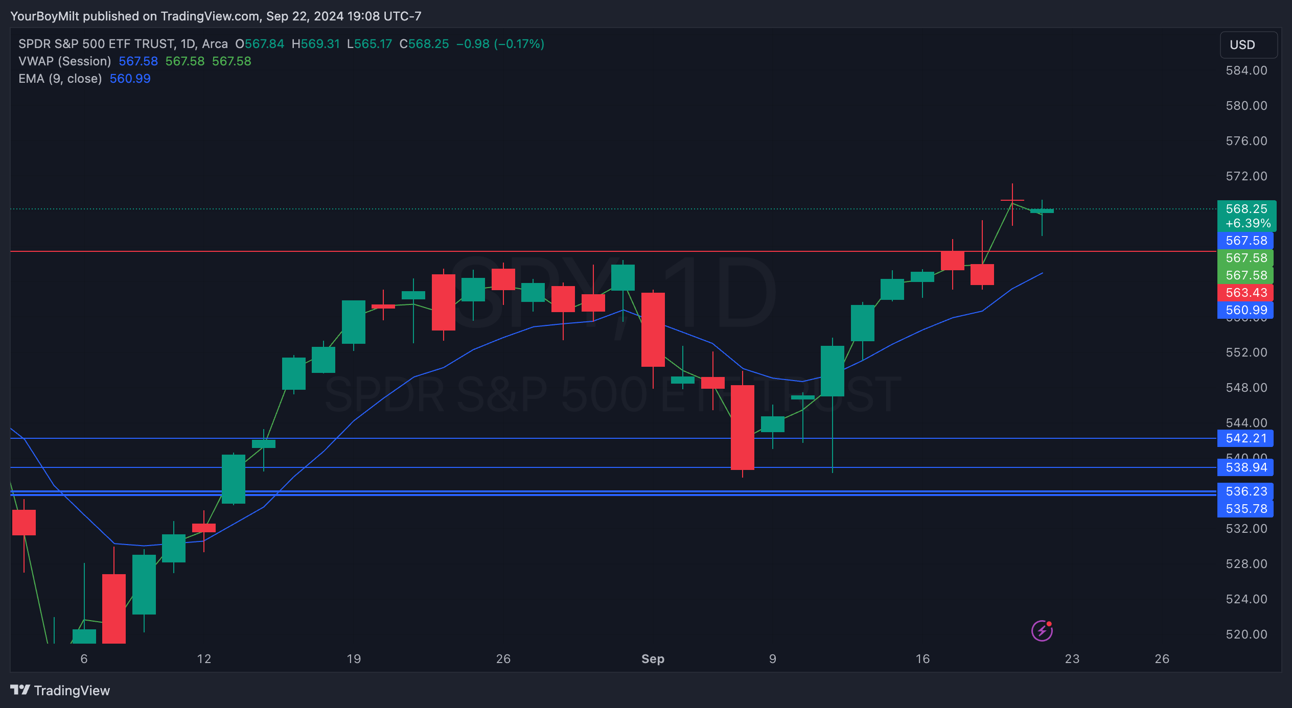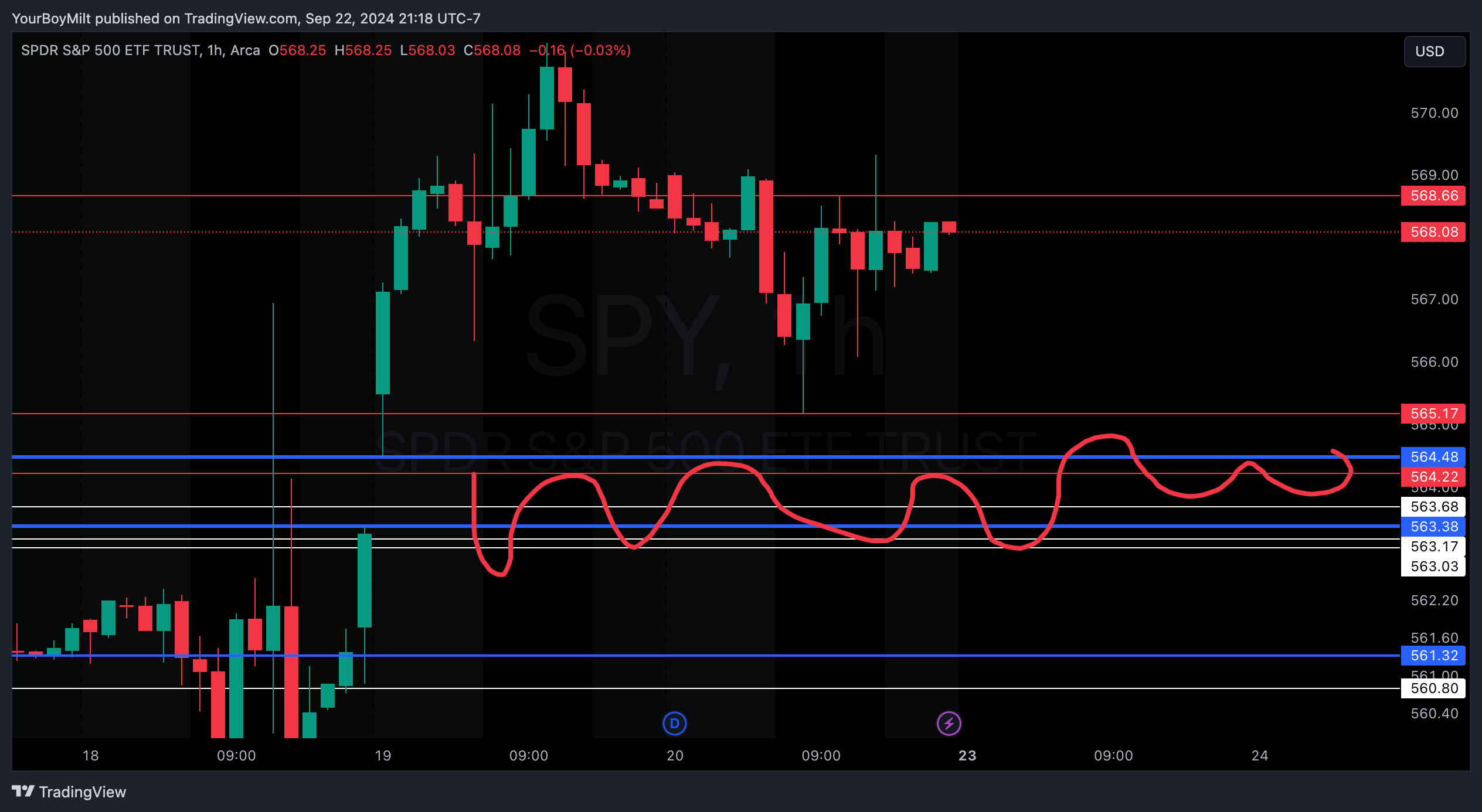 Then you apply those moves to the Price Action you see coming, for example, SPY has an open gap level below. (red squiggles)