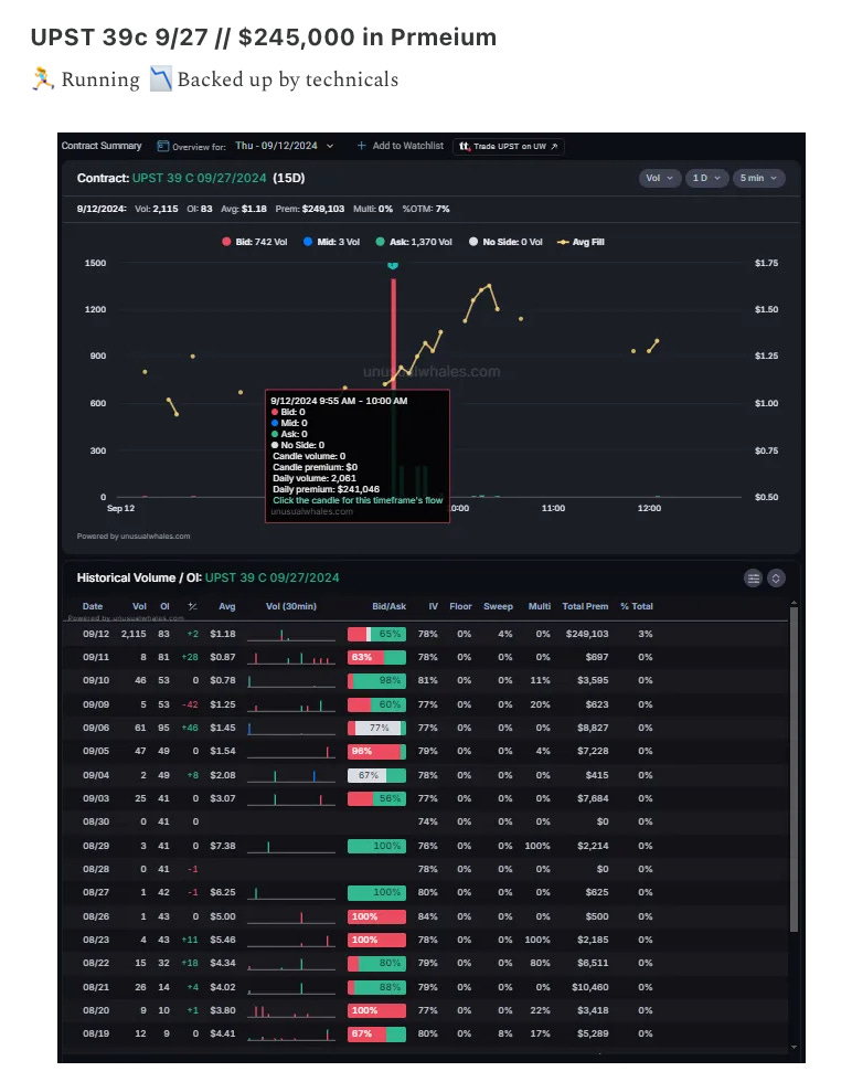 UPST on 9/14 had someone go heavy on the OTM 37.5c 9/2