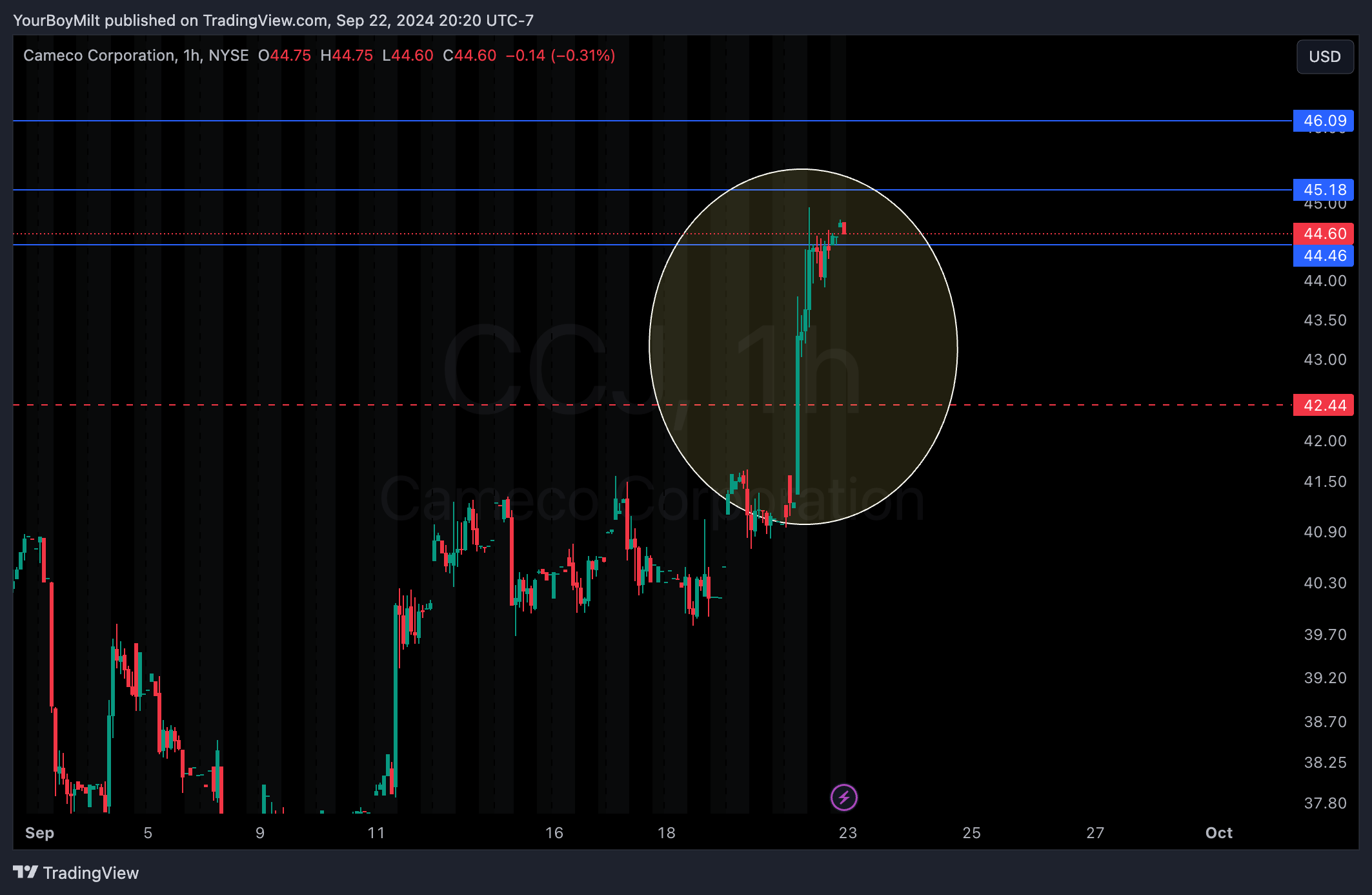 When I posted this on YEET Plus CCJ was trading at 38 last week—it hit 45 on Thursday.