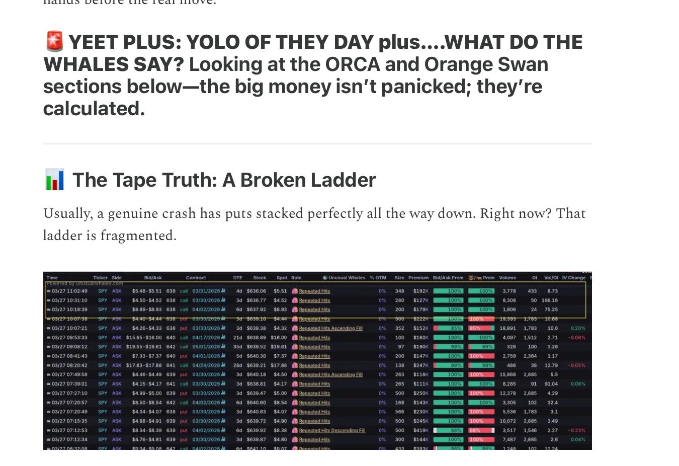 In the last issue, we called for the bounce at Fahrenheit 634.46. The whales signaled it, the level held, and here we are: three sessions later, SPY is trading 10+ points higher after a good war news barrage. That is ORCA at work—and that one was free! 💸