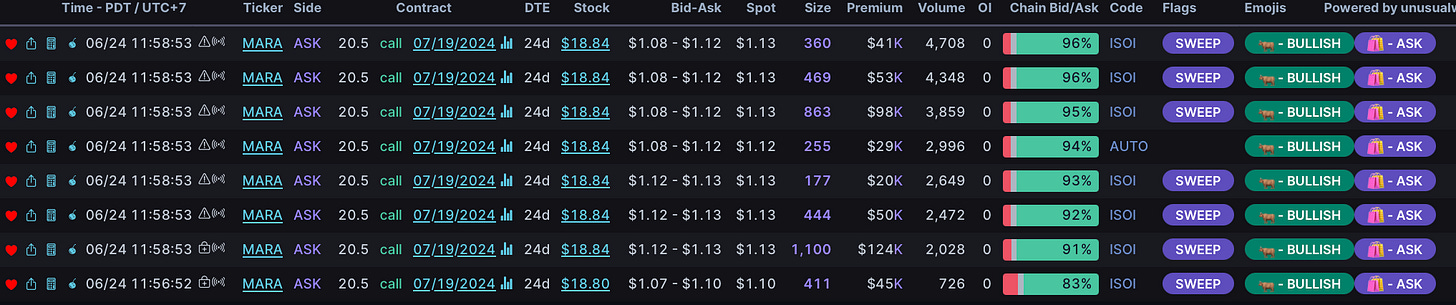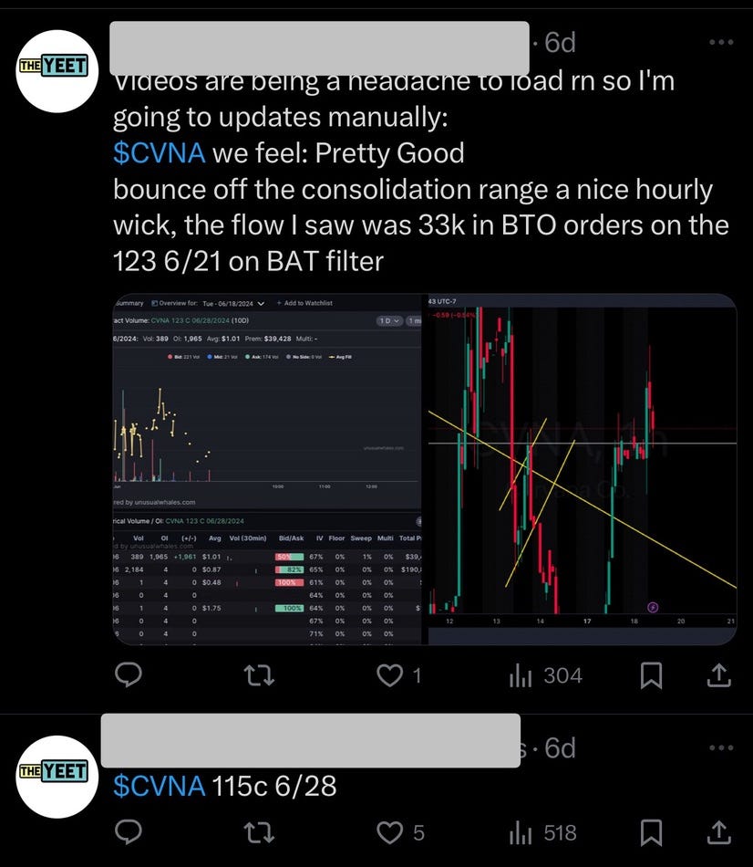 Really Good Flow (like finding the ten point FSLR pop for 100%, CHWY today for 100% as it went 6% on a red index day, and our CVNA calls up 116%)