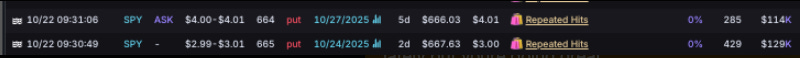Then tioday 665p and 663p orders hit literally seconds before — and one as — the trade-talk headline broke while SPY was still hanging around 667.