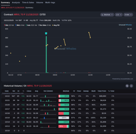 .Just 26 minutes before Trump started talking about curbing U.S. exports to China, someone dropped nearly $100K on MRVL 70p (Nov 28).