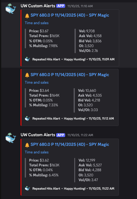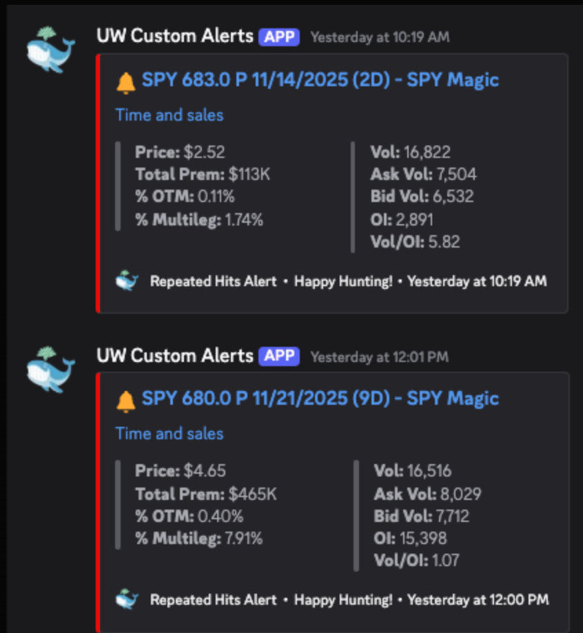 A cluster of 680p hit SPY Magic —one order carrying that eerie “I know something you don’t” aggression.