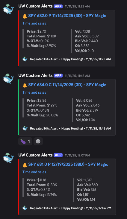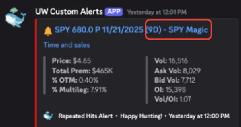 Scan every SPY Magic alert above —almost every bearish order had what the bullish orders lacked: