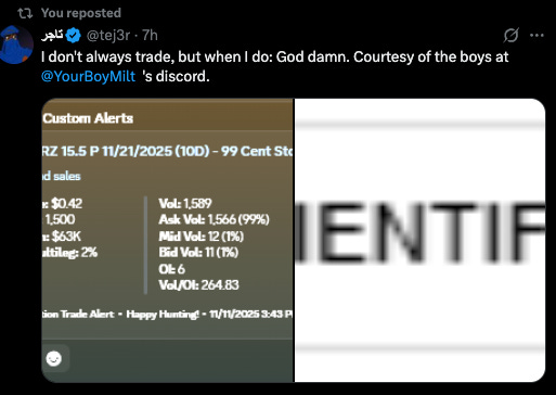 They were buying puts with enough DTE to be early —the kind of trade that looks stupid…until it’s not.