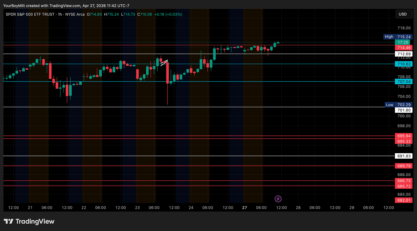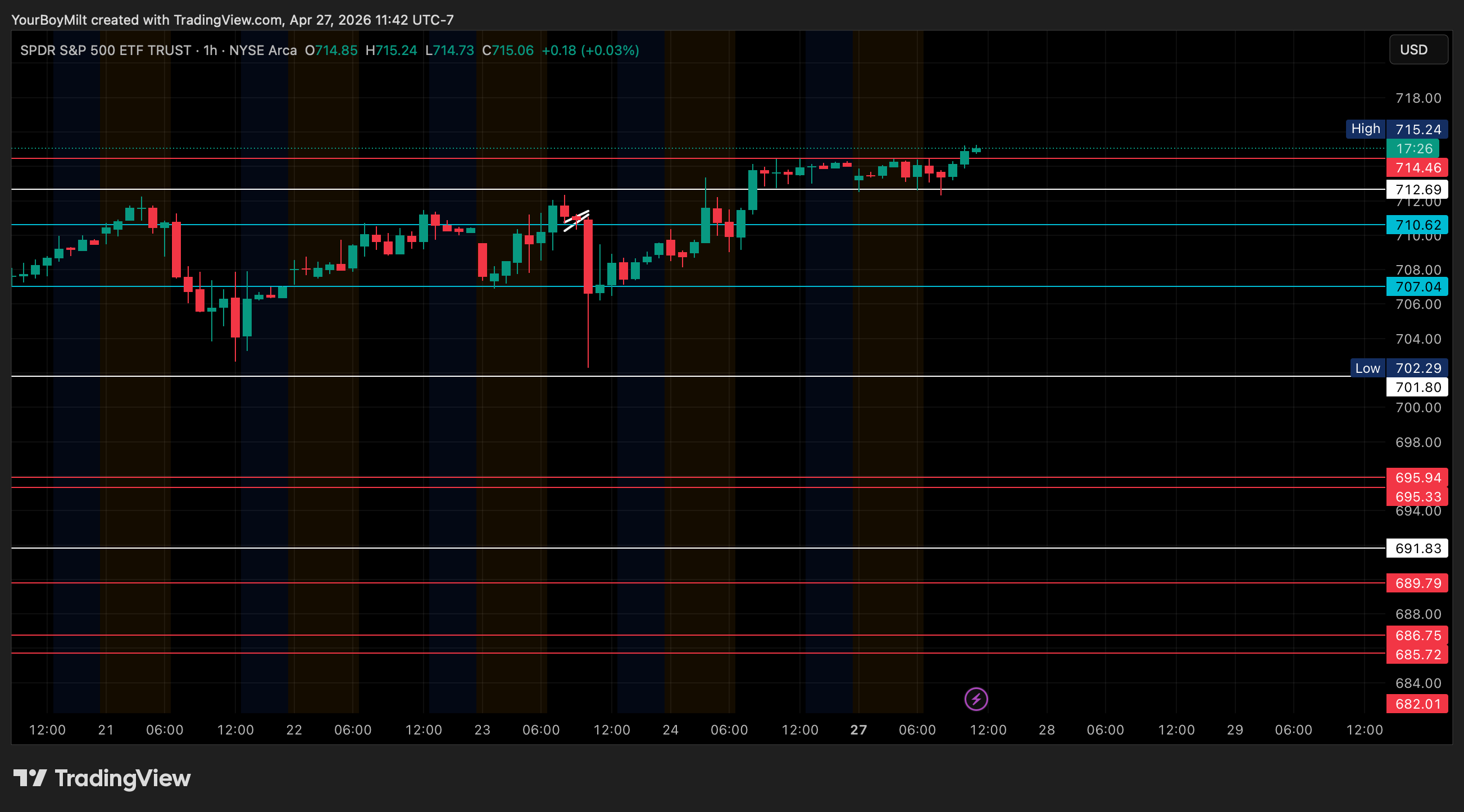 🧠 Neutral: Chop between 712 and 715 before the headline. Let the news make the move. Trade the reaction, not the anticipation.