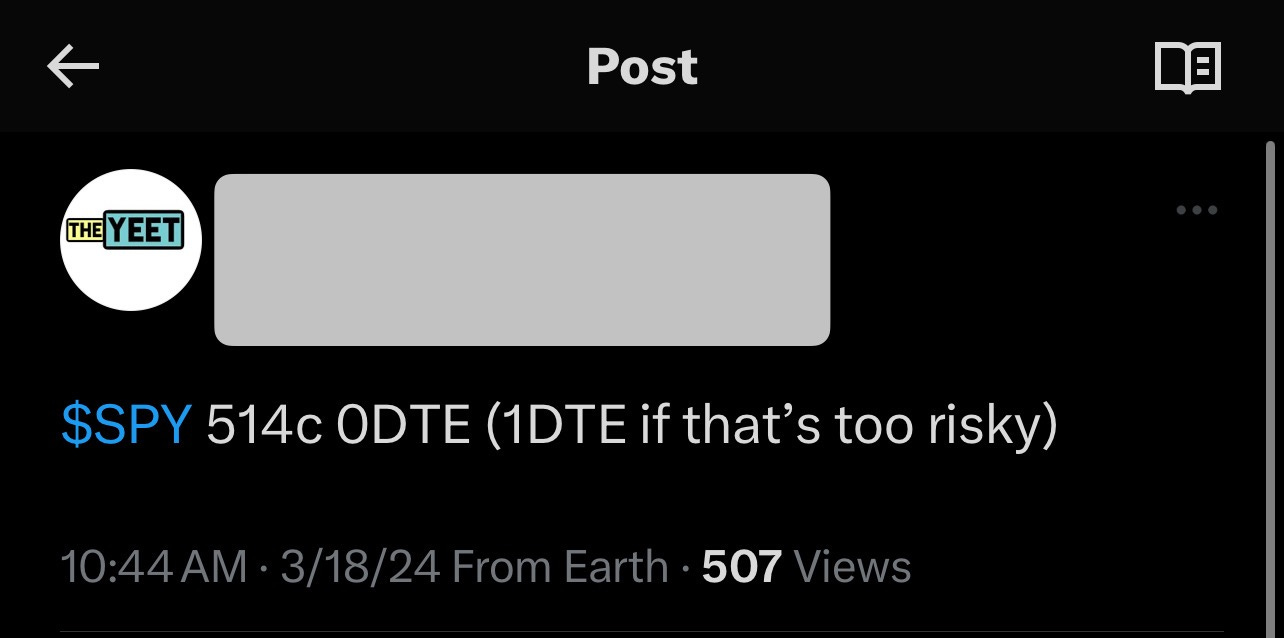 ✅ Trade: Review: SPY 514c 56% (screenshots from YEET+ Twitter Account)