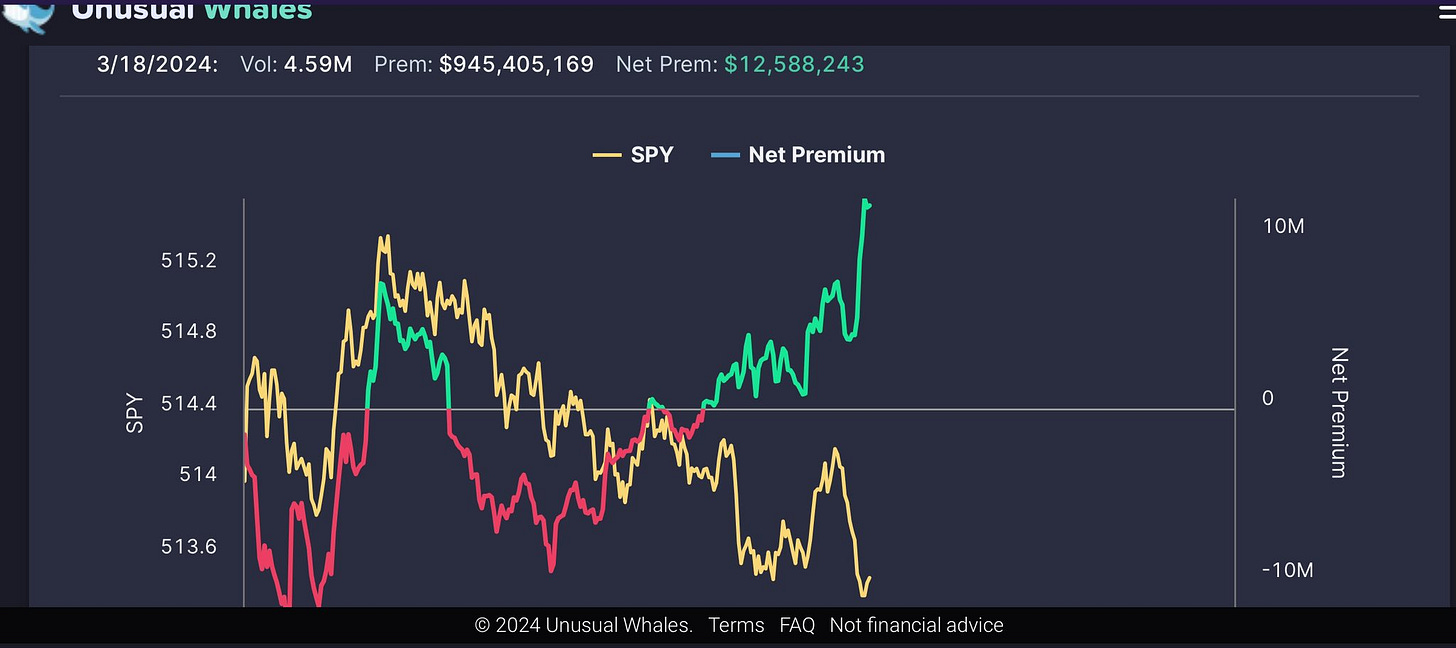 Today we got a chance to see how the net premium tool can work really well to help give us confidence and direction of SPY int. Then toward the end of the day, we got a chance to see how it could diverge a bit. For now, let’s go back to do a trade review of the one that we explicitly used the Net Flow to enter.