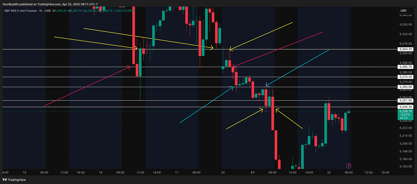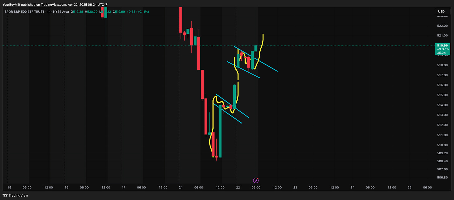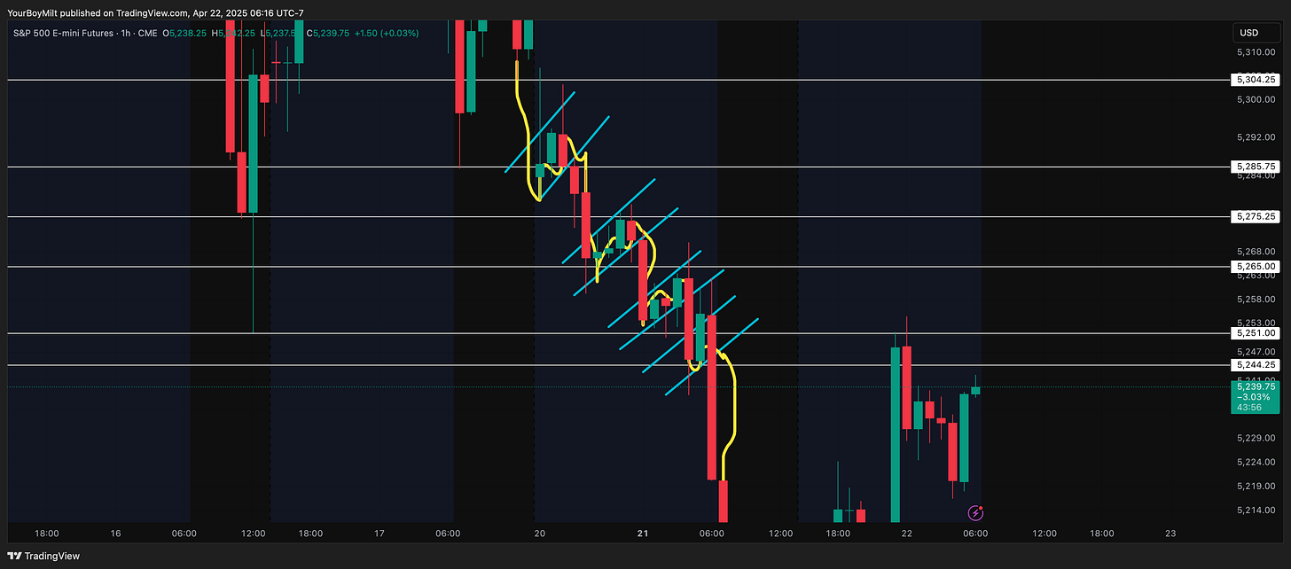 When the day starts in this volatility, it’s key to look at the patterns forming on the overnight. For me, the most telling pattern is formed in flags on the hourly.