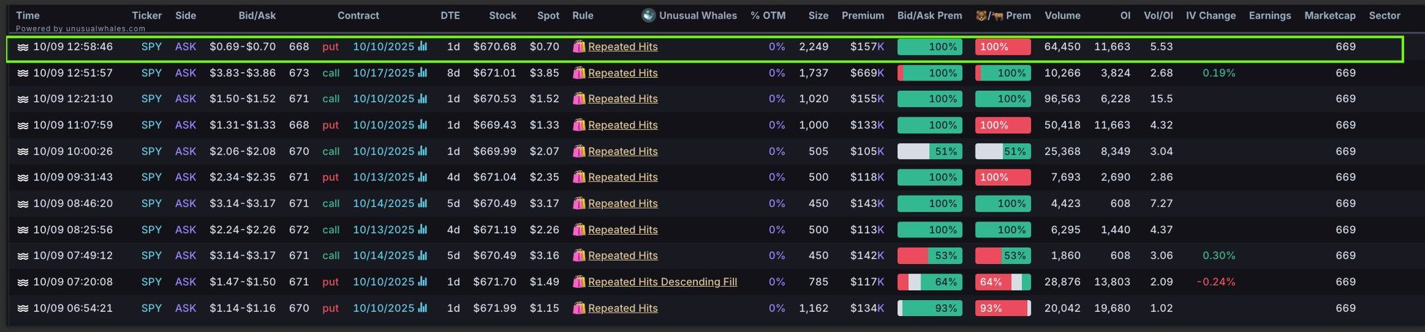 Thursday afternoon, while most traders were easing into a bullish weekend, one massive 1DTE SPY put order came through late in the day.