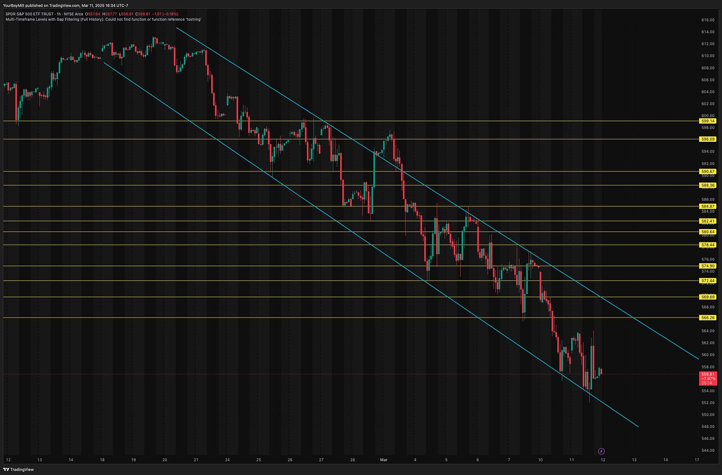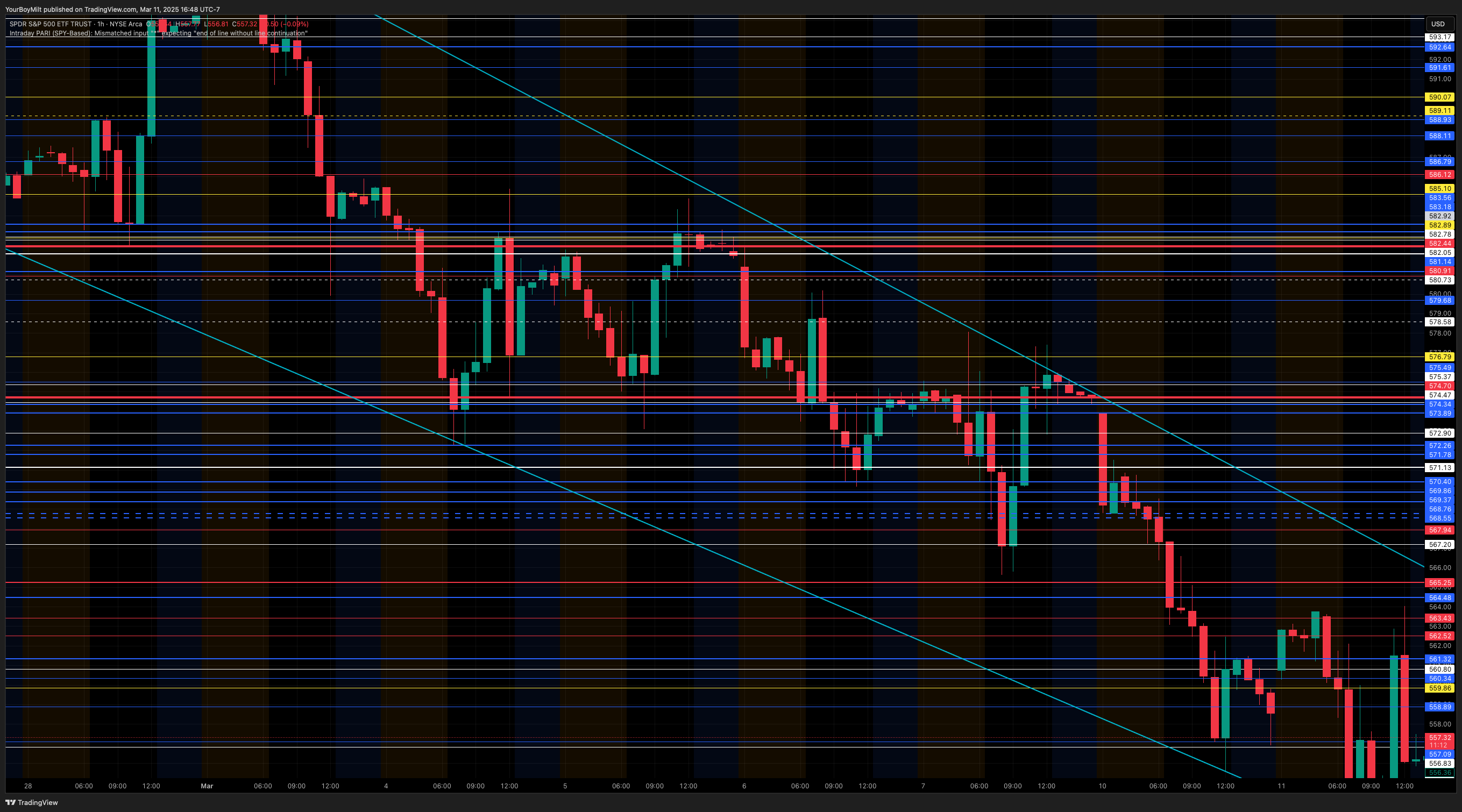 🔴 575.24 – March 7th’s untested close. 🔵 568.35 – Former liquidity gap level. 🔴 560.58 – Yesterday’s close, potential CPI pivot zone.