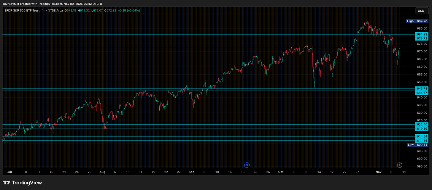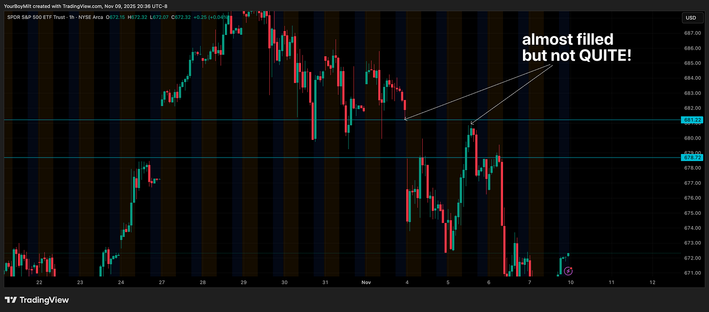 😇 and above us, one stubborn gap at 681.22 → 678.72 that almost filled but didn’t.