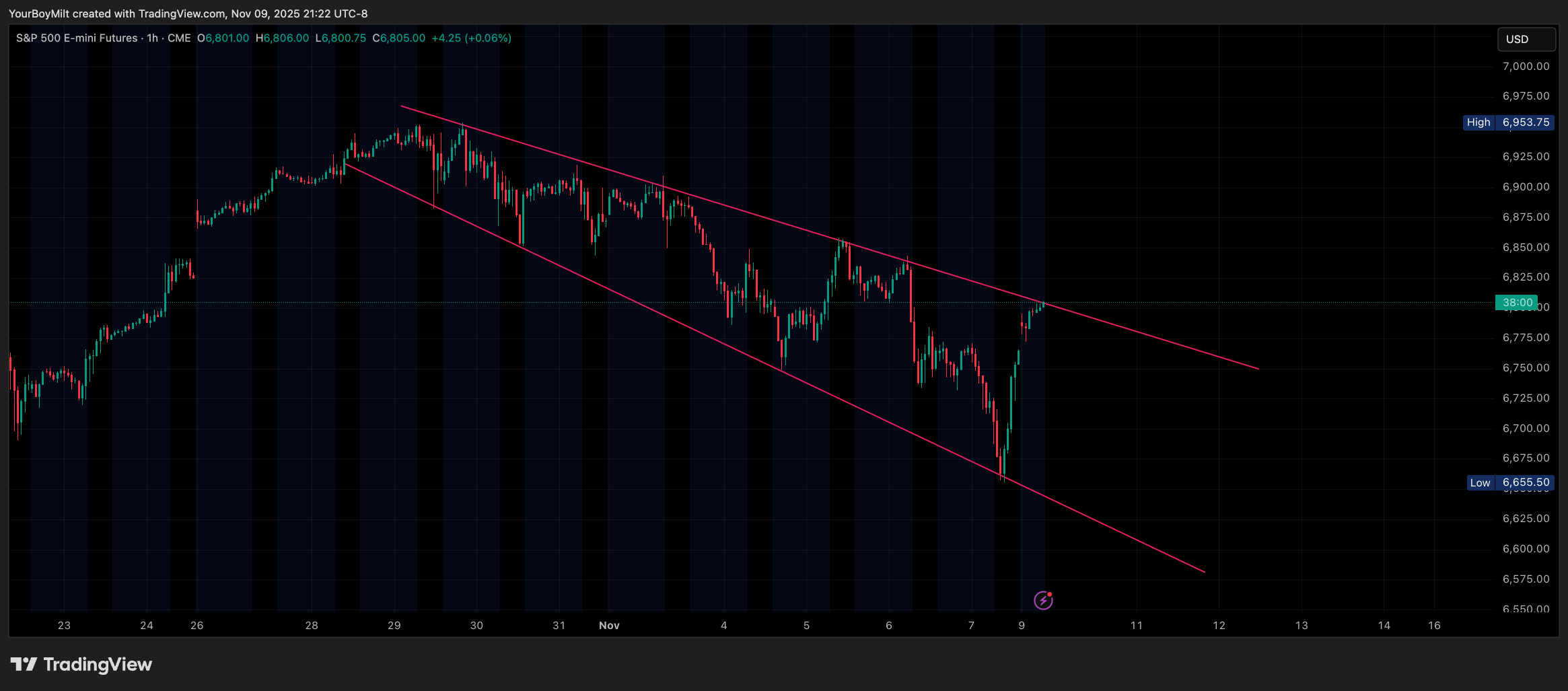 On ES, the megaphone we’re testing right now tells you everything: widening volatility, swings expanding both directions, liquidity being yanked from either side. It’s anyone’s game until the next decisive tag.