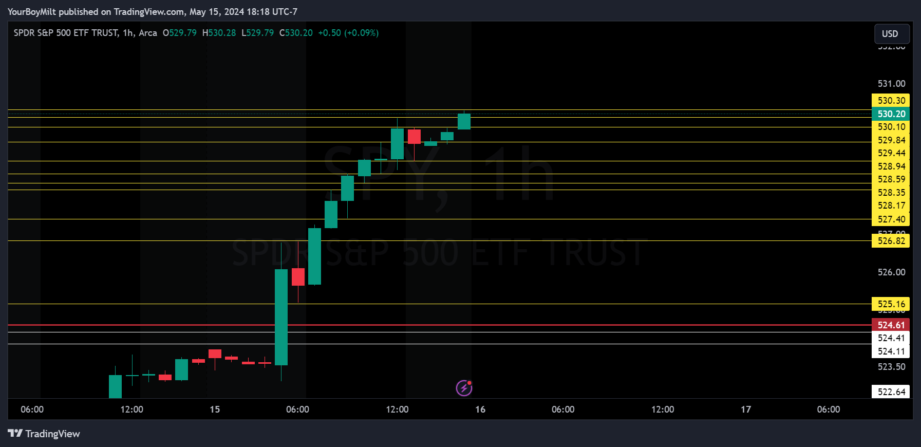 2. For directional trades, use lows and highs of day, as well as premarket and after hours highs and lows (this will fill out more over the next session or two