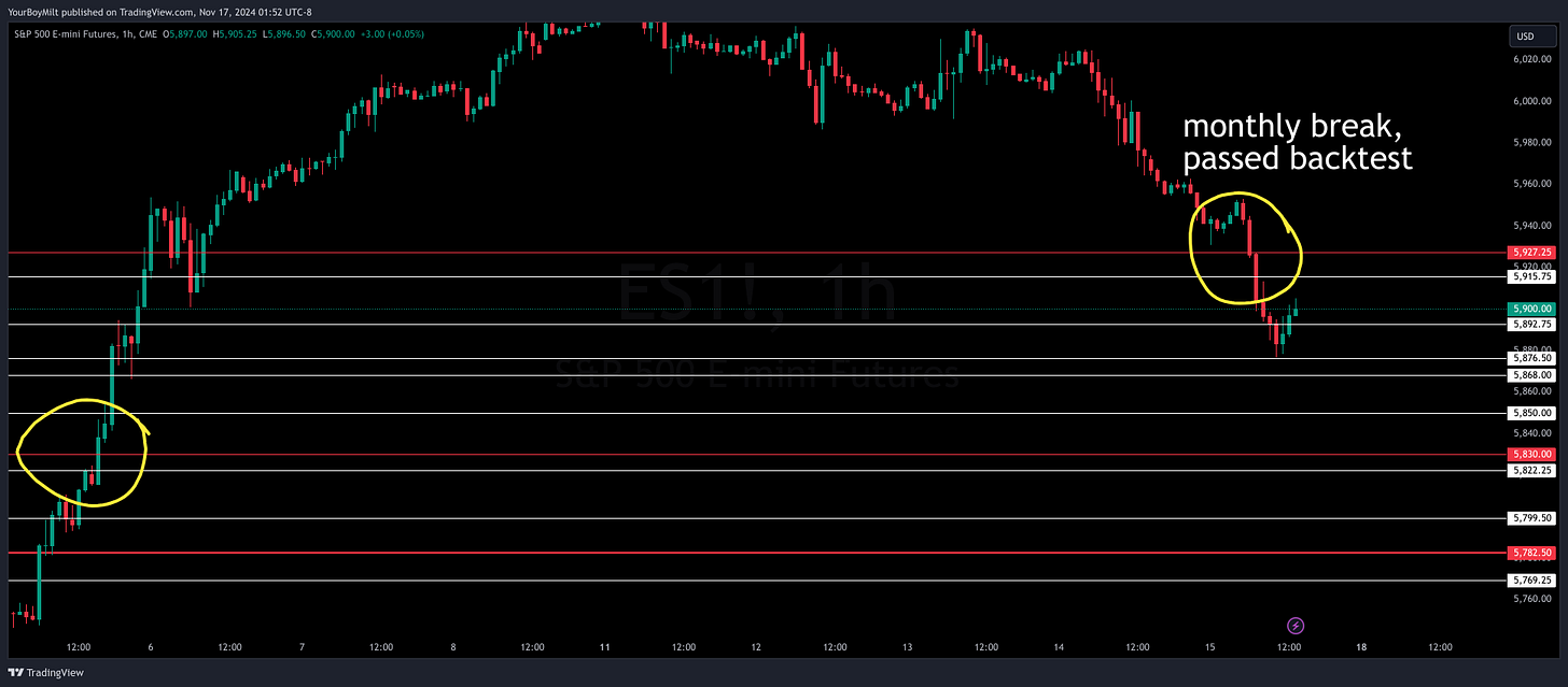 ES Monthly level? Broken, and with a proper backtest on the way down that means technically our next stop is 5830.