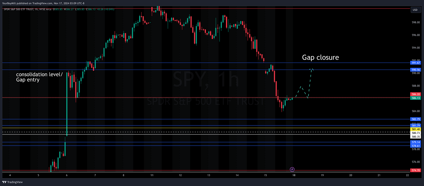 If we get a pop above the 586.2 monthly itâs likely they want to close that lil Gap to the upsideâwhether itâs a false breakout or not doesnât matter to us (it will be), we just want to catch the free points off a clean retest.