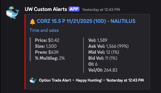 Price: $0.77 Size: 2,100 Premium: $161 K Vol/OI: 6.2× OI: 338