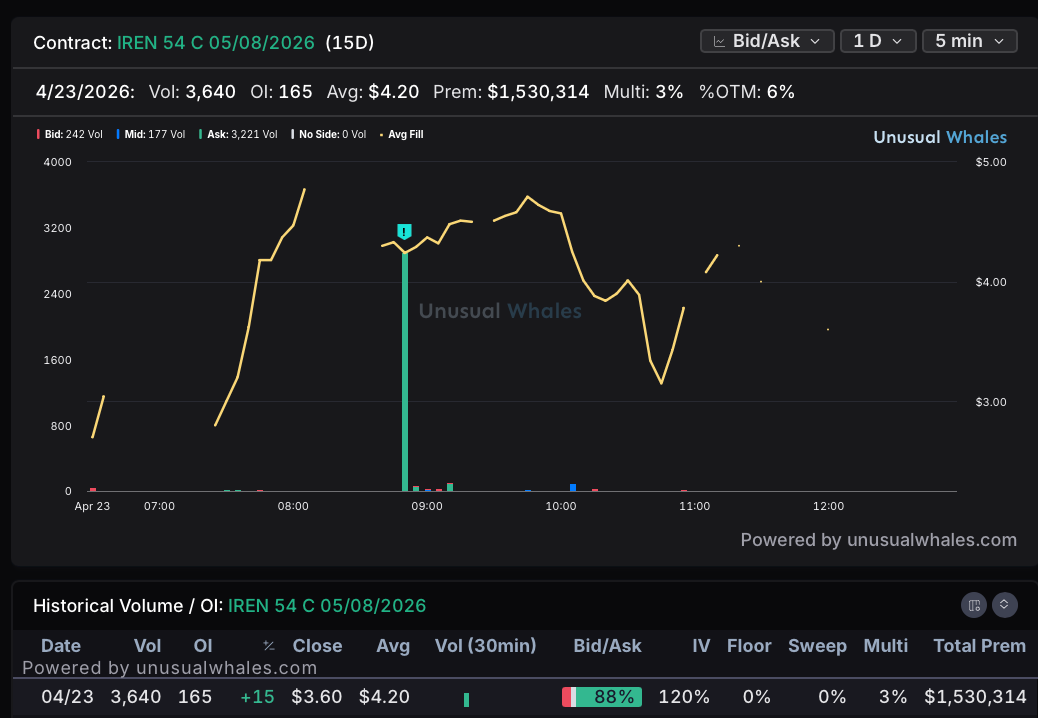 IREN 54c 5/8– Massive $1.2M sweep print