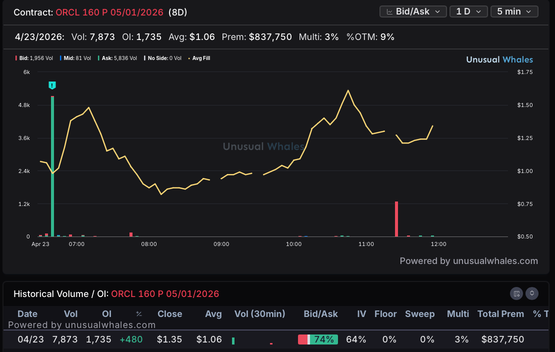 ORCL 160p 5/1: $487,452