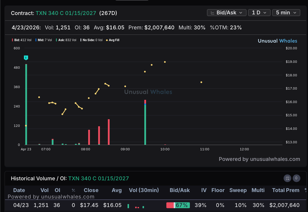 TXN (Texas Instruments): +$780,183 Net | 100% Bullish