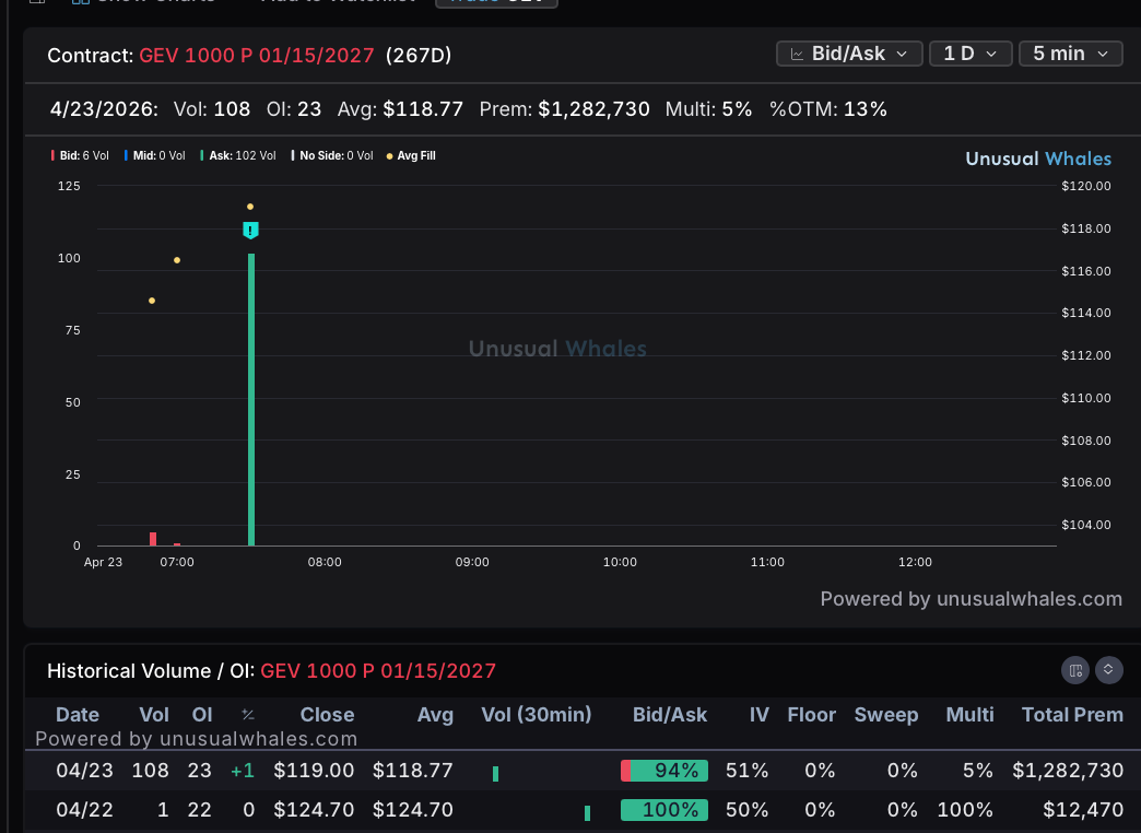 GEV (GE Vernova): −$1,018,020 Net | 95% Bearish