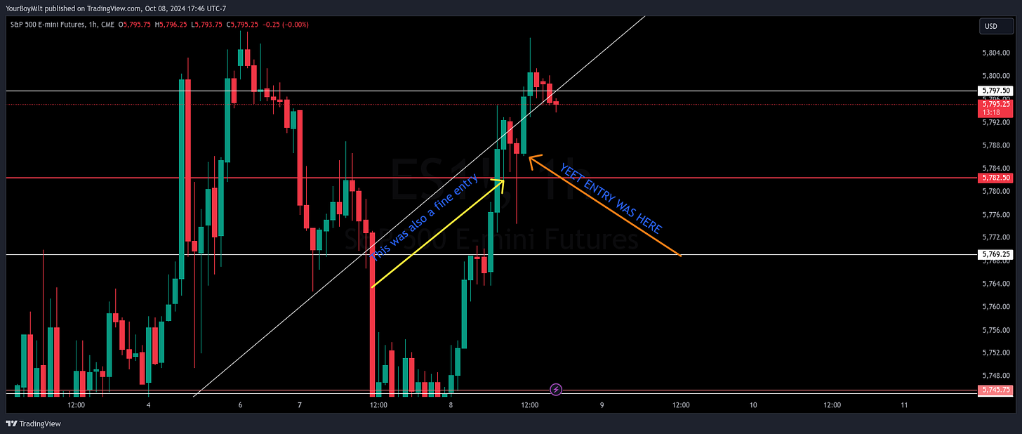 Either of the entries pointed out below were technically valid for SPY 0.00%↑ scalps—either the yellow one from earlier, or the orange one we took.