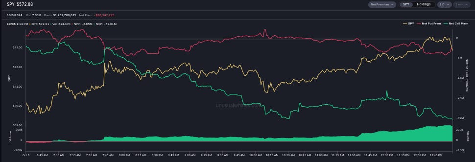 Net Premium: Bearishness remained elevated through the end of the session, serving as a potential warning as we retest the highs
