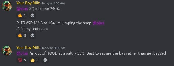 The PLTR puts from today were the YOLO of the Day in last night’s YEET Plus flow Section.